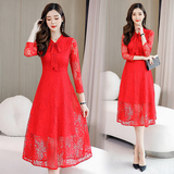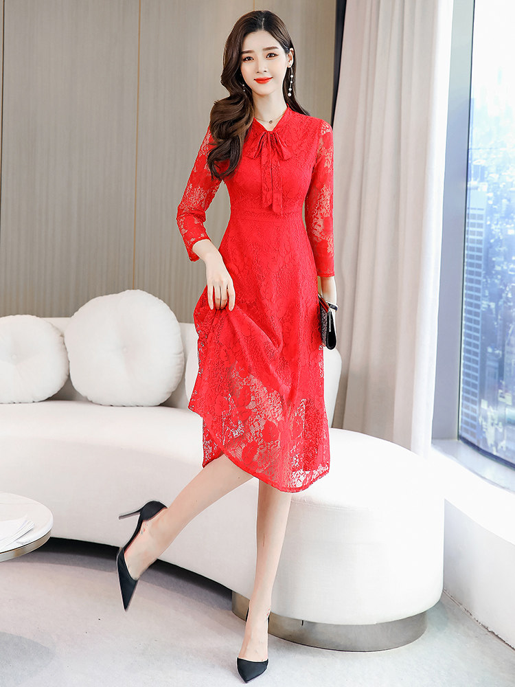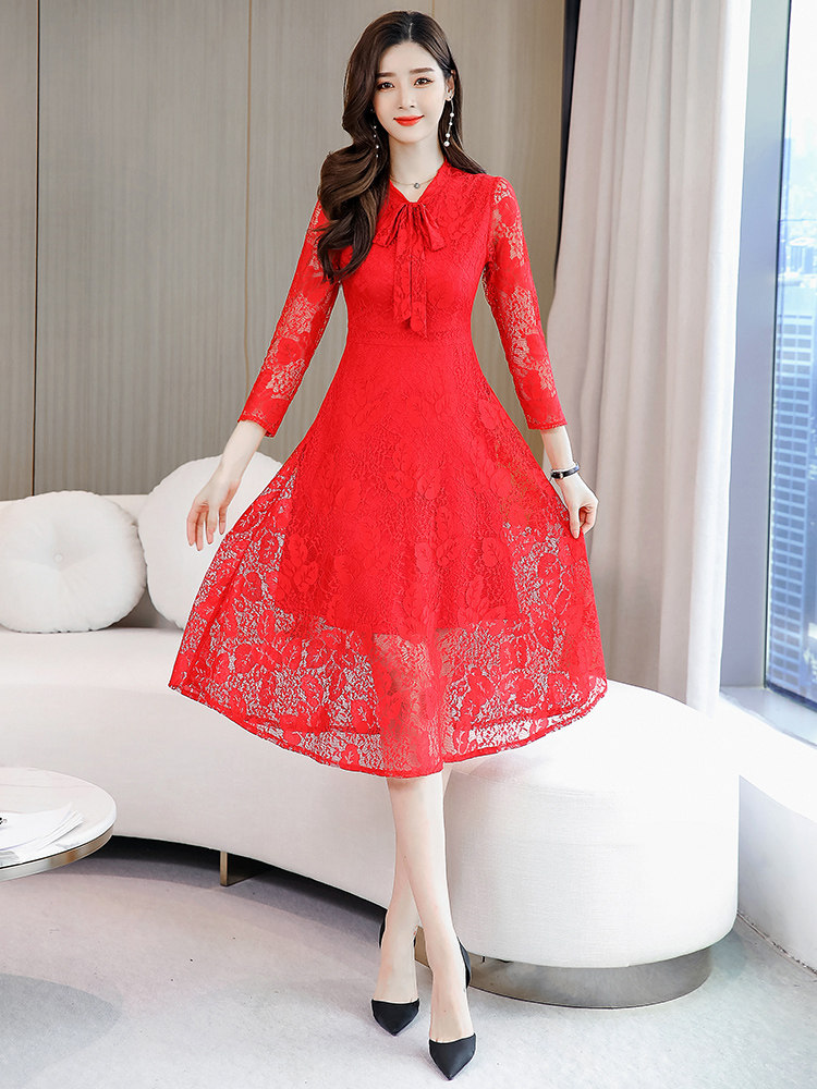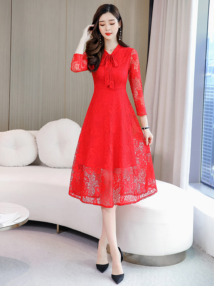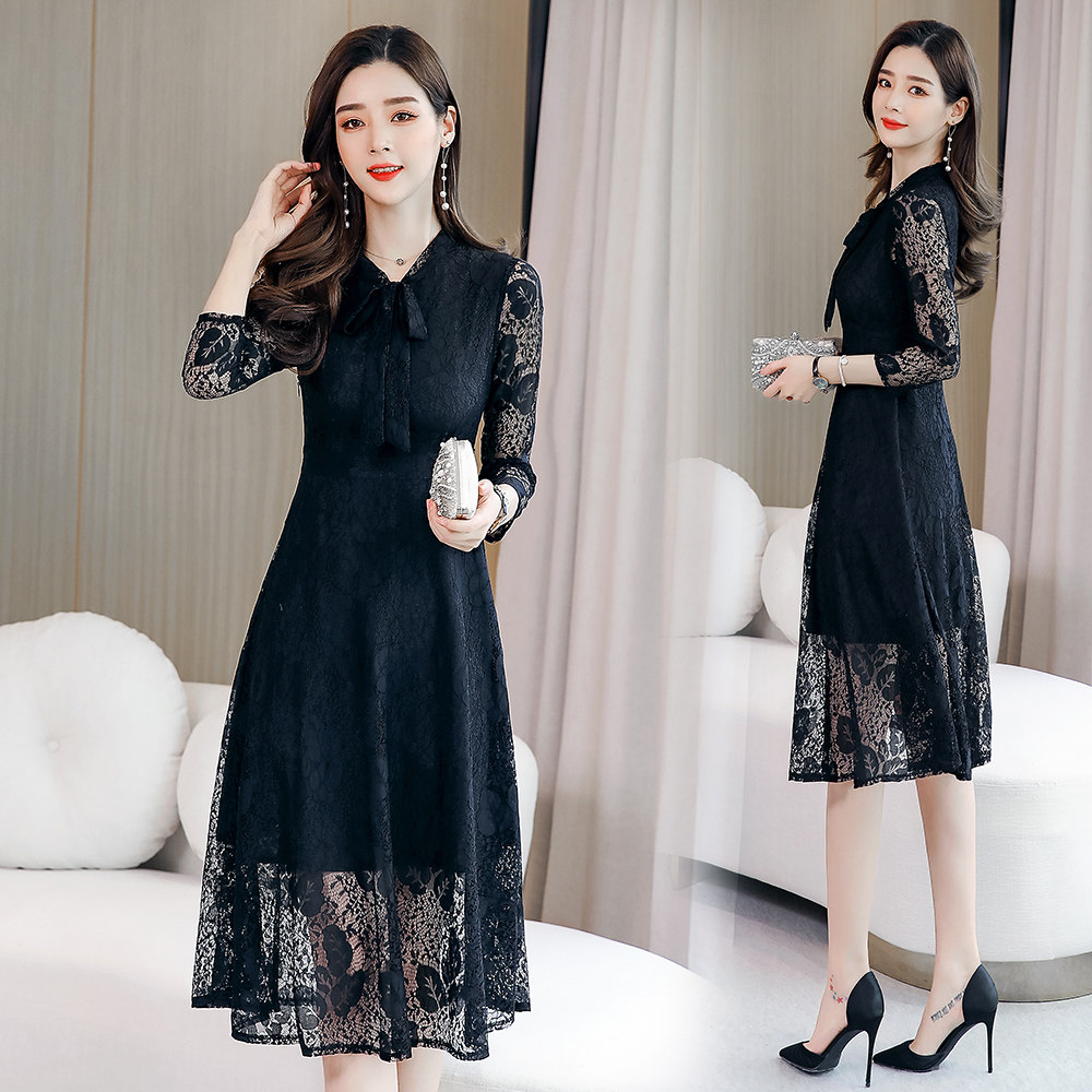 Осеннее кружевное длинное платье, комплект, средней длины, подходит для подростков
