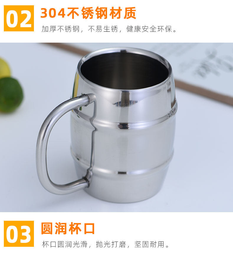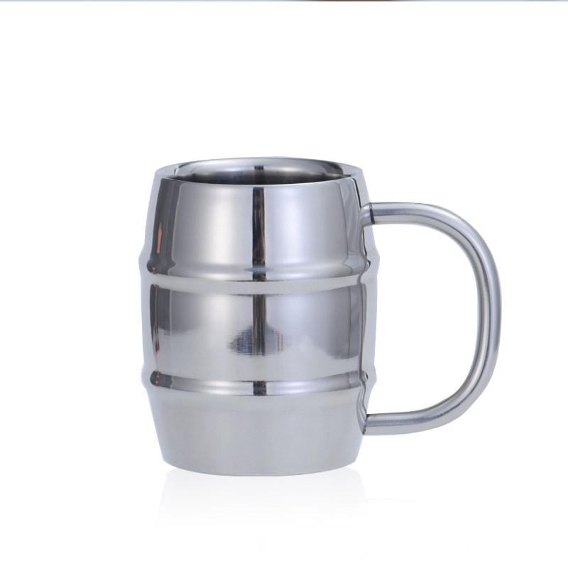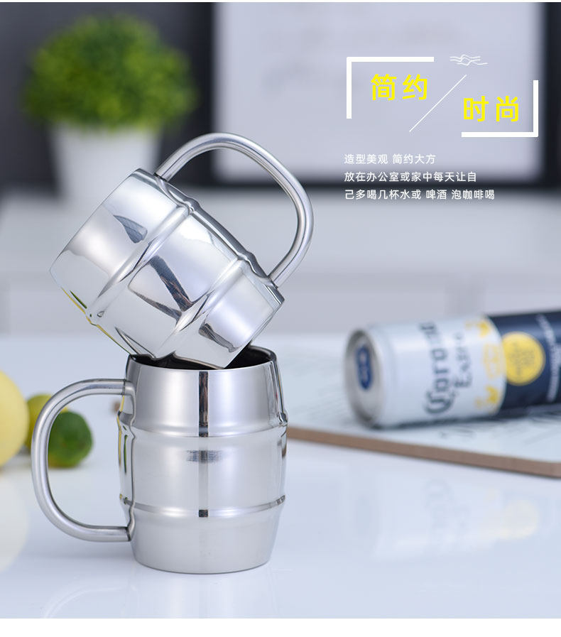 Двухэтажный бокал из нержавеющей стали, ручка со стаканом, чайная чашка, увеличенная толщина, нержавеющая сталь AISI 304, защита от ожогов, подходит для караоке-баров