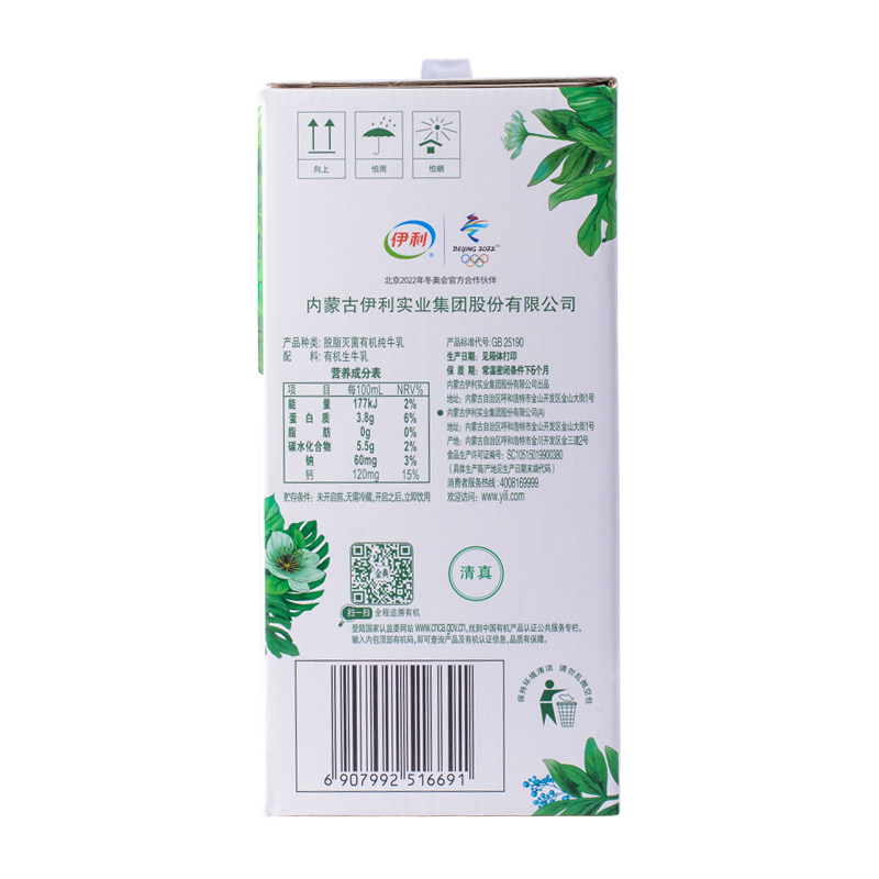 Yili Jindian Organic Skiming Pure Milk 250 мл*10/коробка