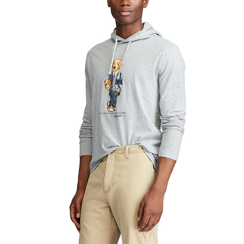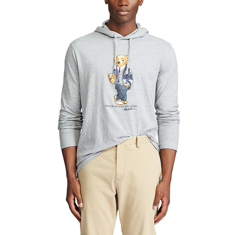 【P】Мужская классическая футболка-поло с капюшоном и медведем RL11743