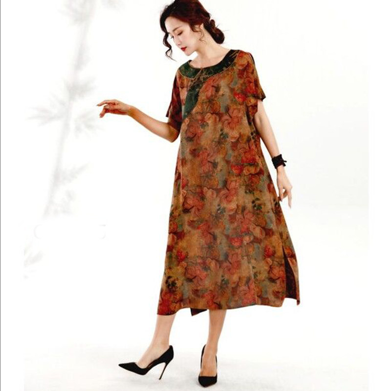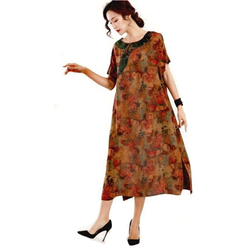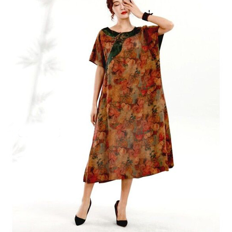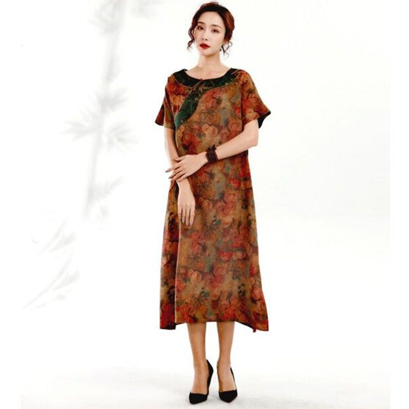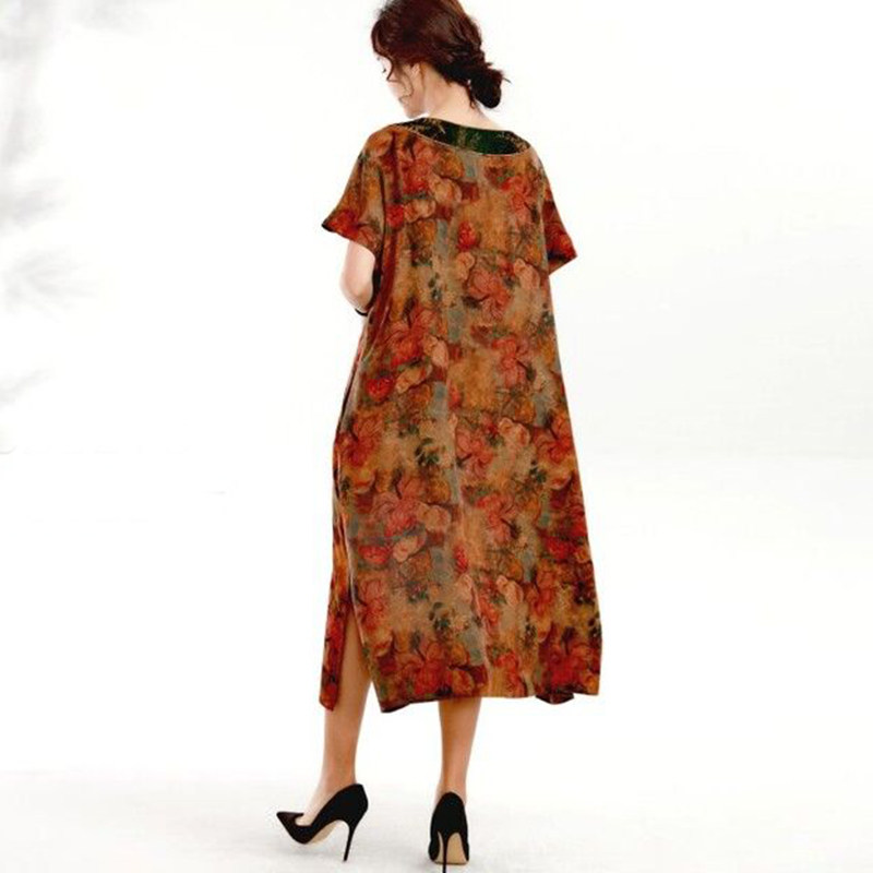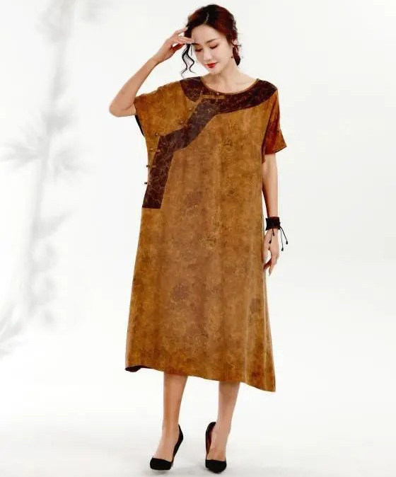 Летнее ретро медное платье с коротким рукавом для путешествий, короткий рукав, свободный крой