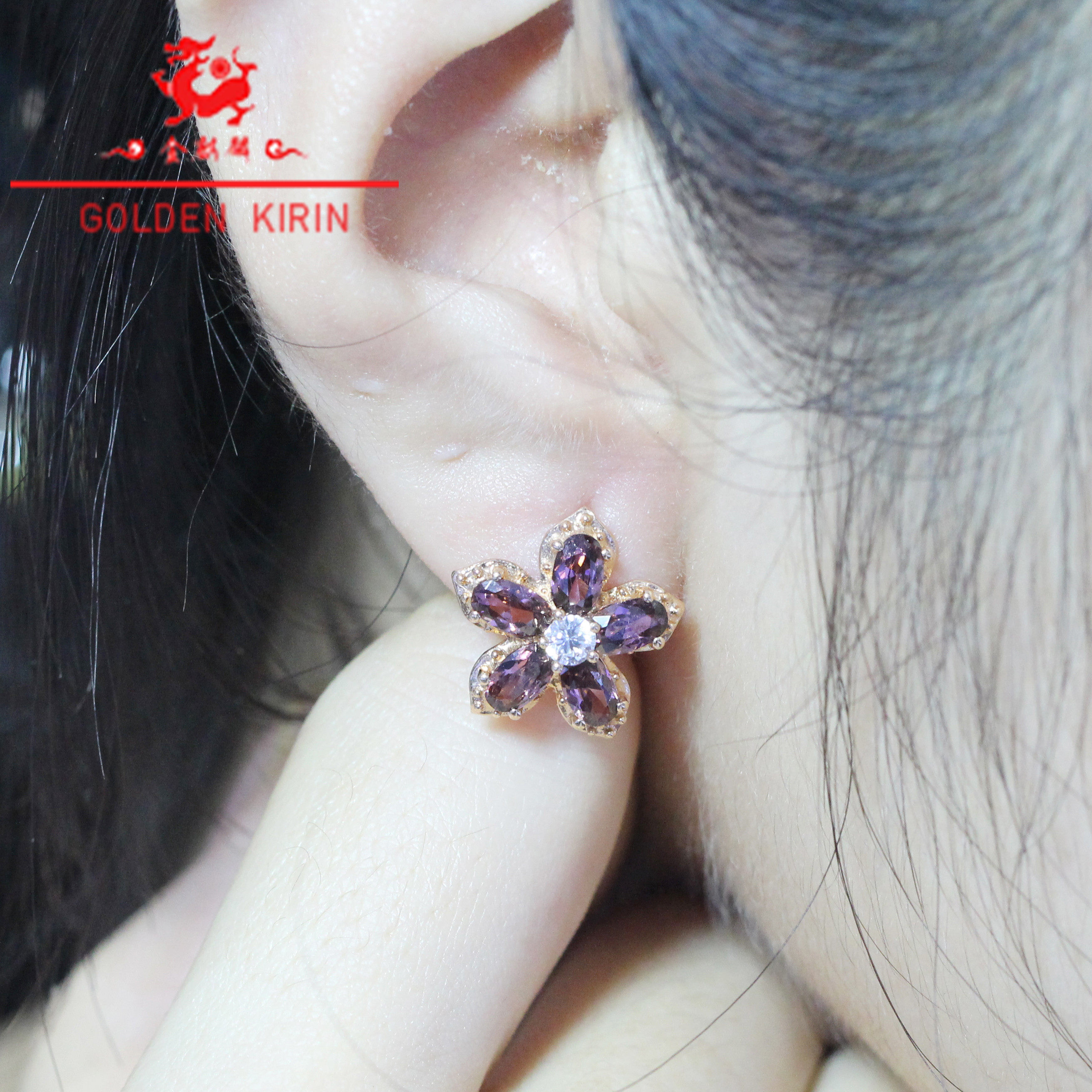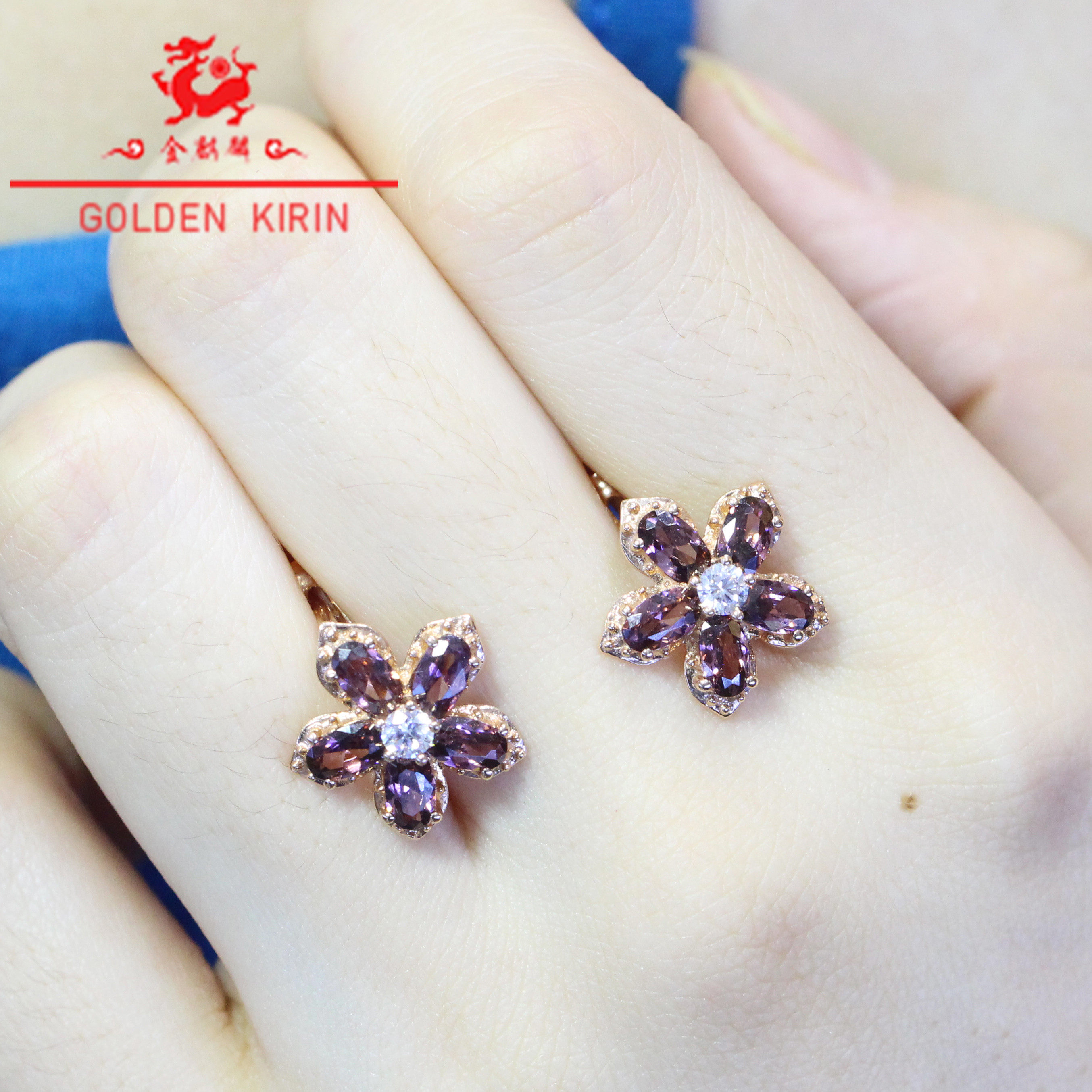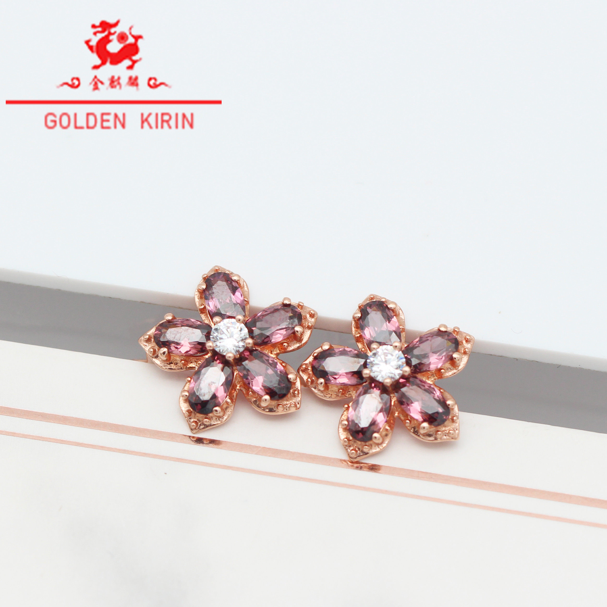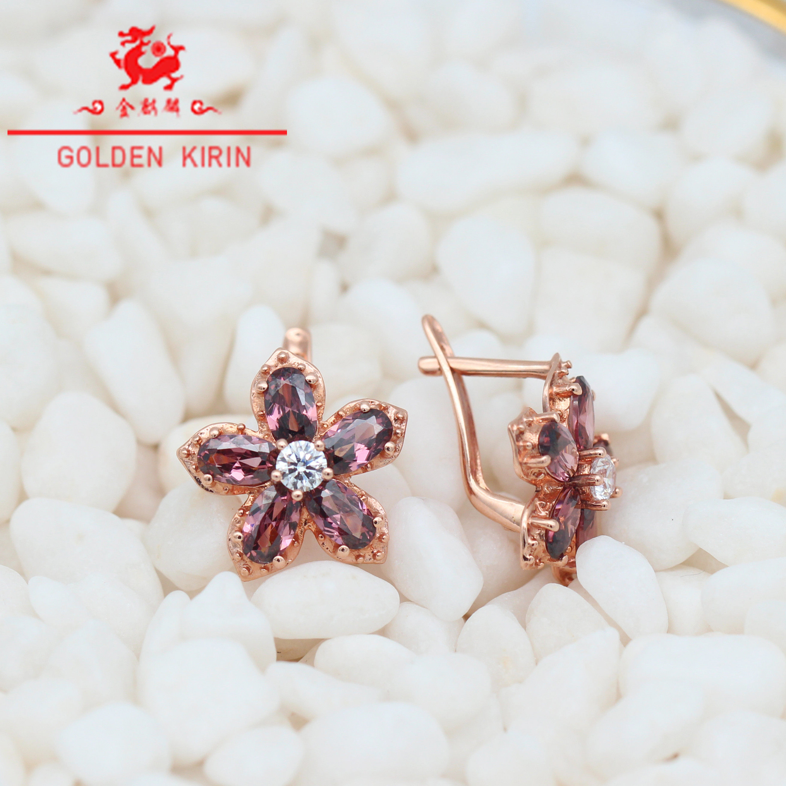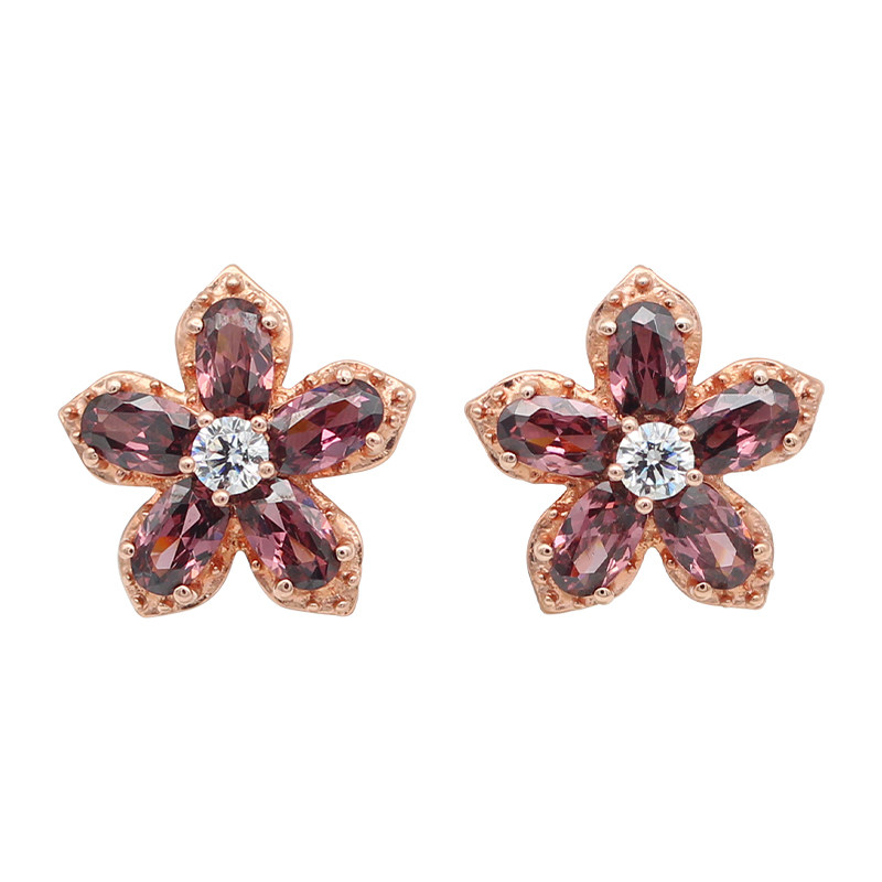 Золотые элегантные небольшие дизайнерские серьги, Россия, 14 карат, розовое золото, с драгоценным камнем, в цветочек