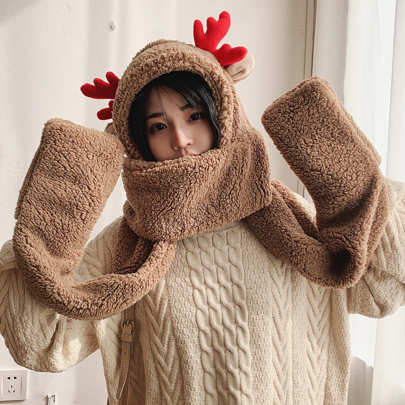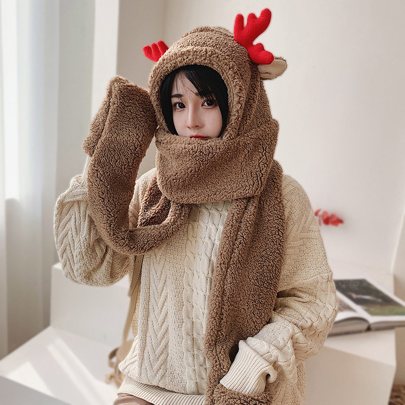 Демисезонная японская милая универсальная шапка, удерживающие тепло бархатные перчатки, шарф, в корейском стиле