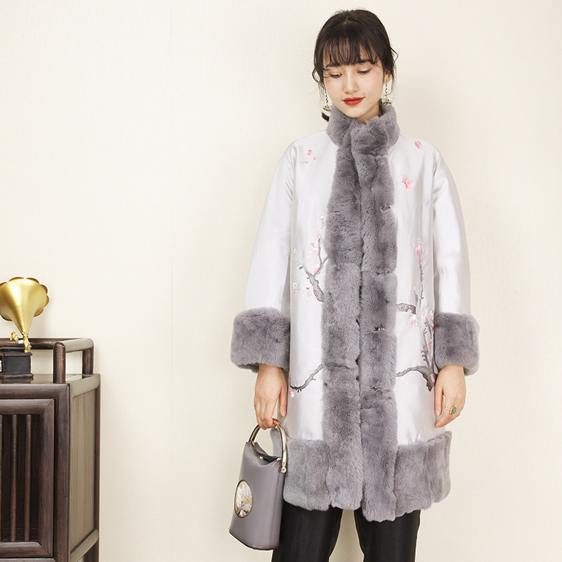 Ципао, стеганая куртка, пуховик, китайский стиль, увеличенная толщина, длина миди