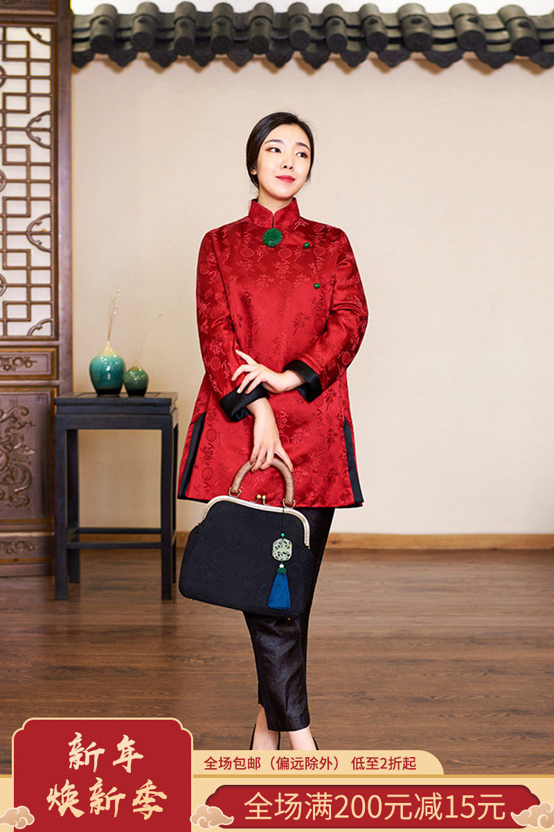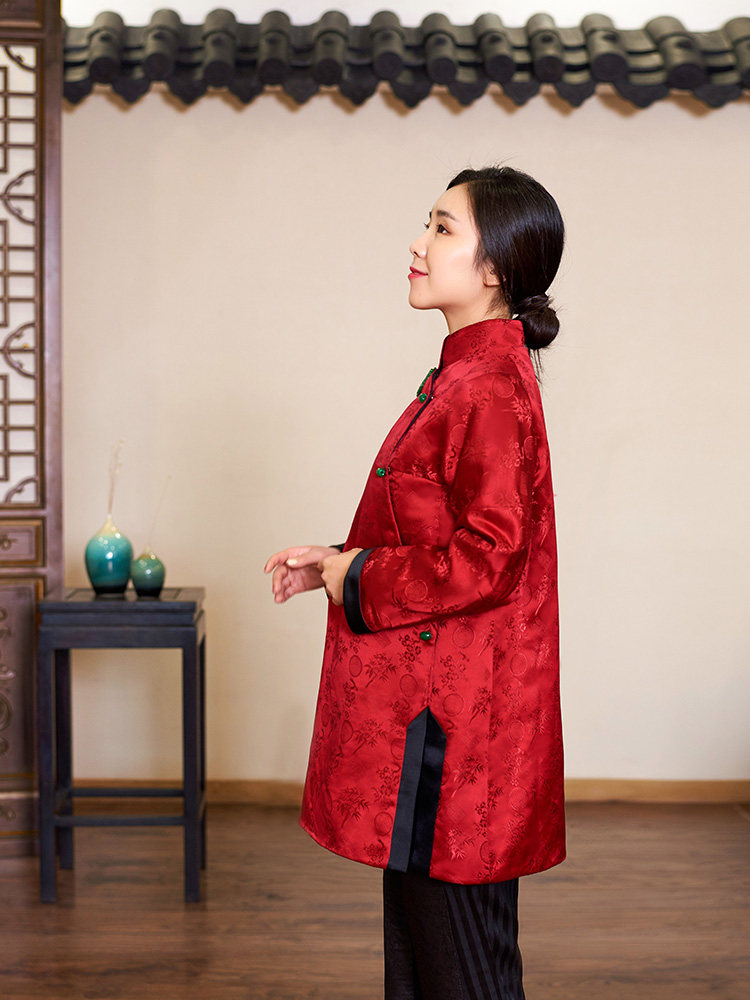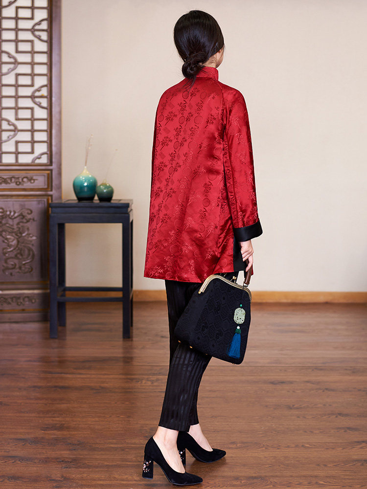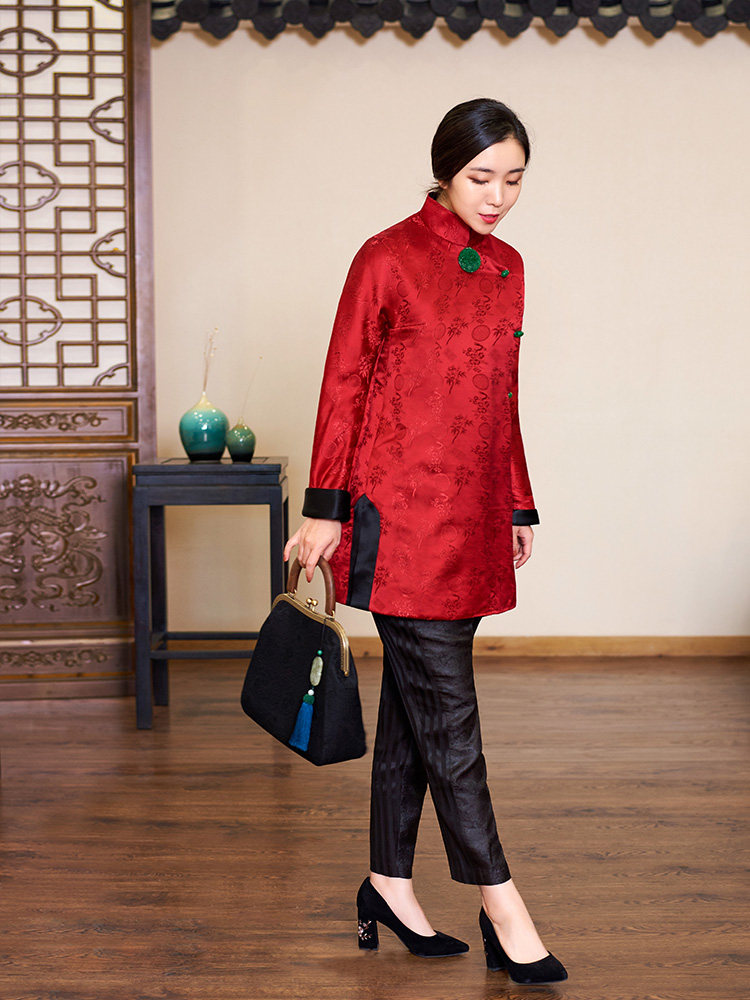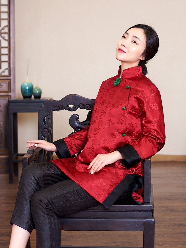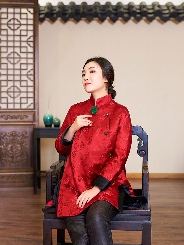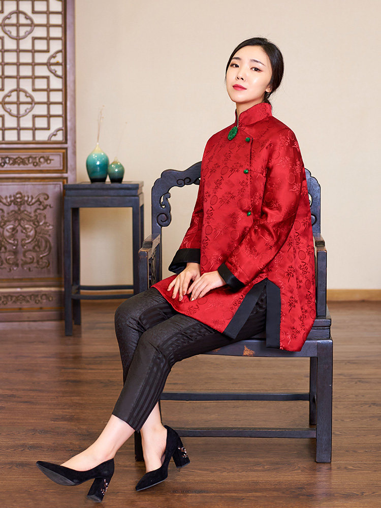 Полная шелковая парчка Жаккард Джейд Пакт Новая годовая куртка, которая превращается в красную и зеленую в волшебство