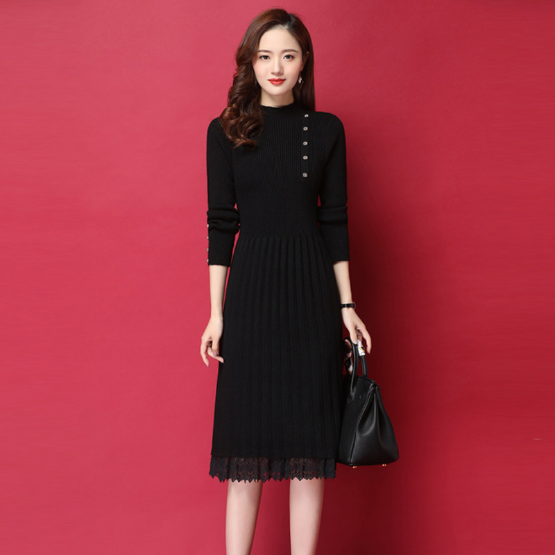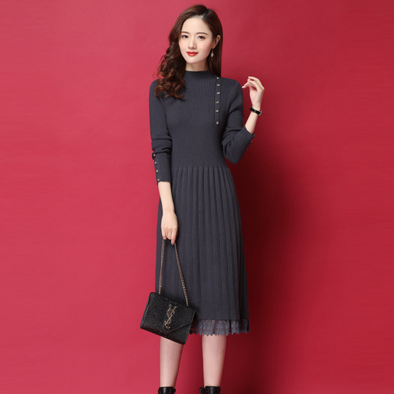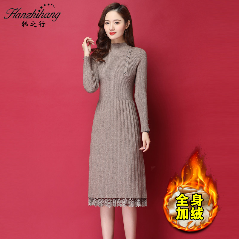 Зимнее демисезонное базовое длинное трикотажное платье, увеличенная толщина, 2023
