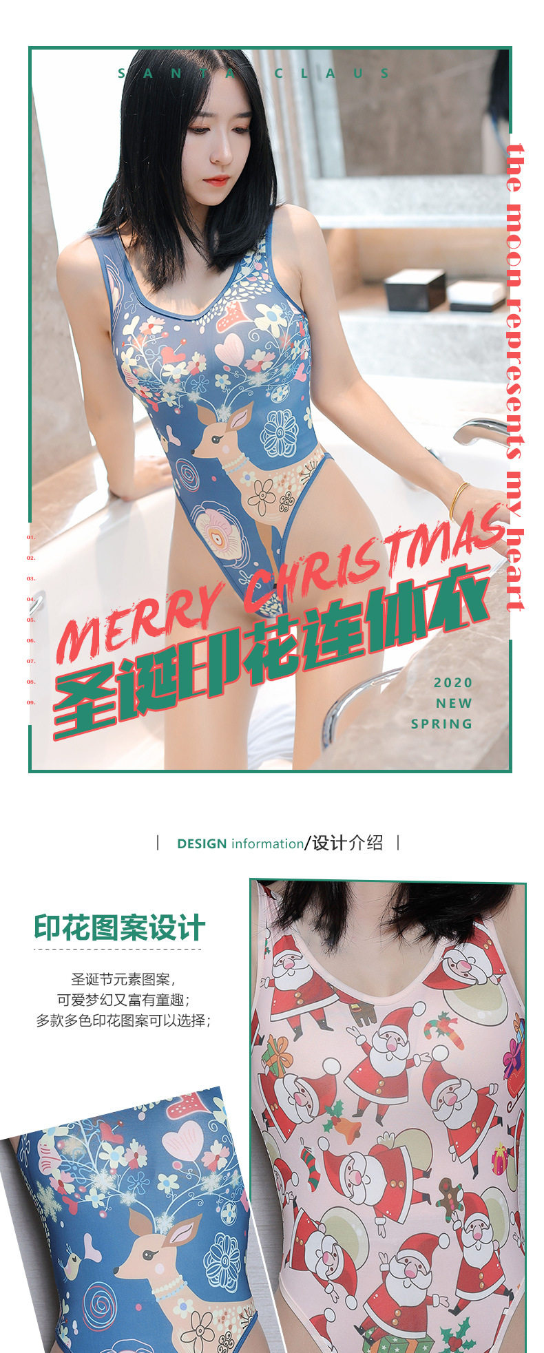Сексуальное нижнее белье женское сексуальное спечаток Рождество милая база данных с высокой вилкой вода маленькая грудная куртка