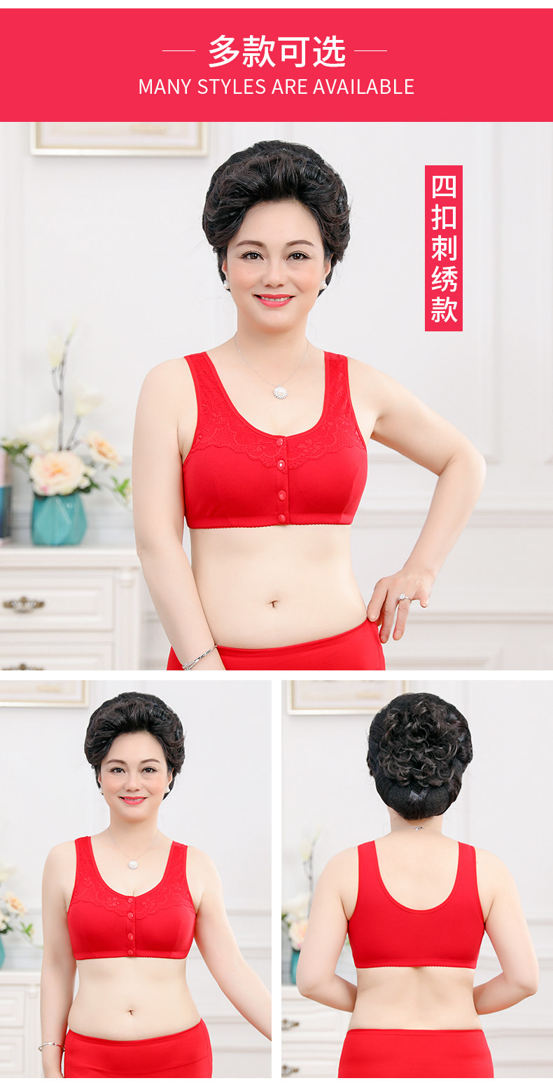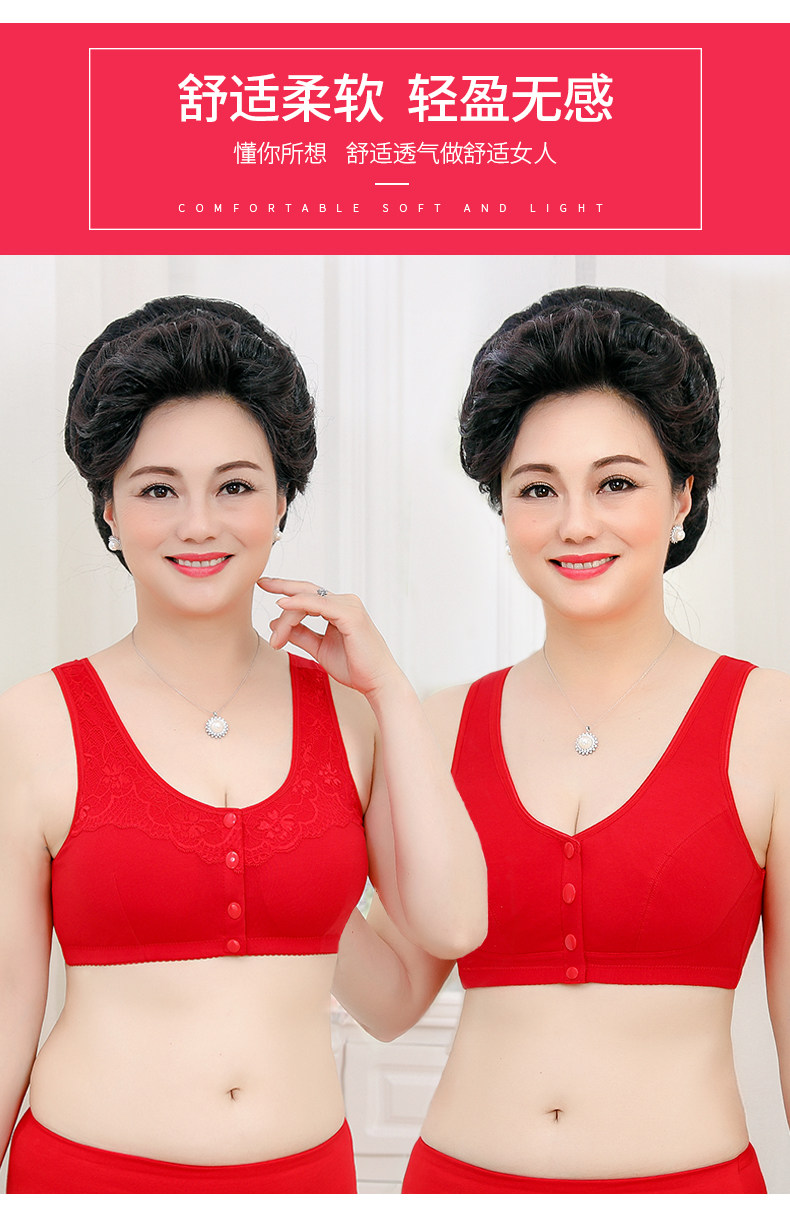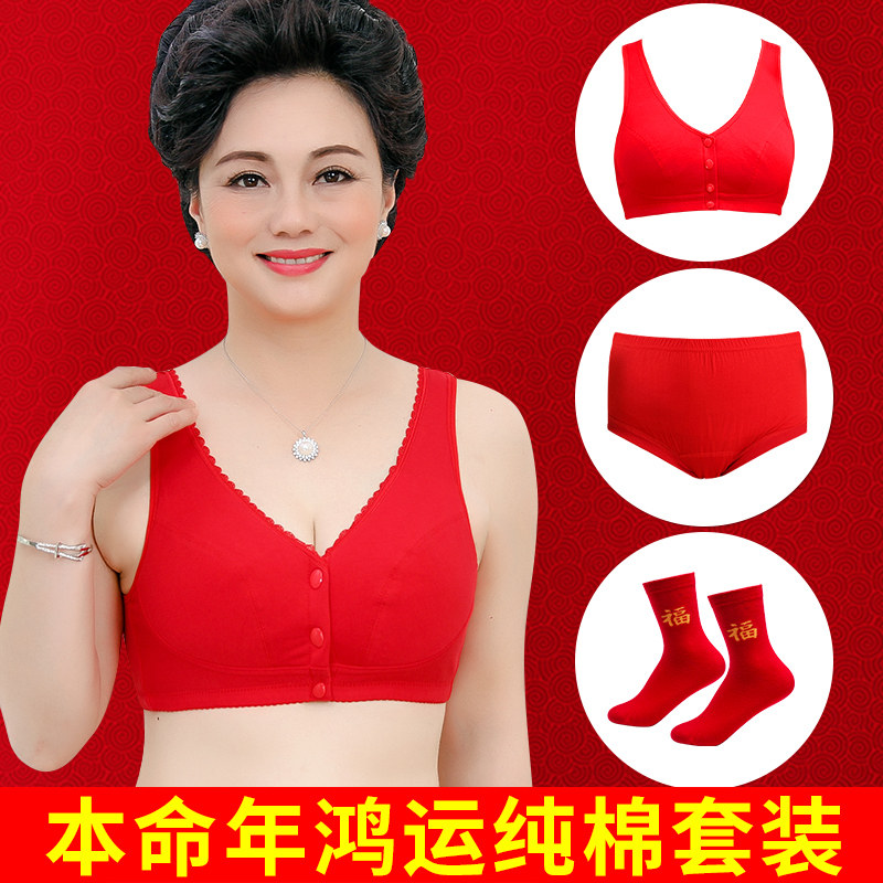 Красный оберег на день рождения для пожилых людей, бюстгалтер для матери, хлопковое нижнее белье, бюстгальтер без косточек, комплект, для среднего возраста