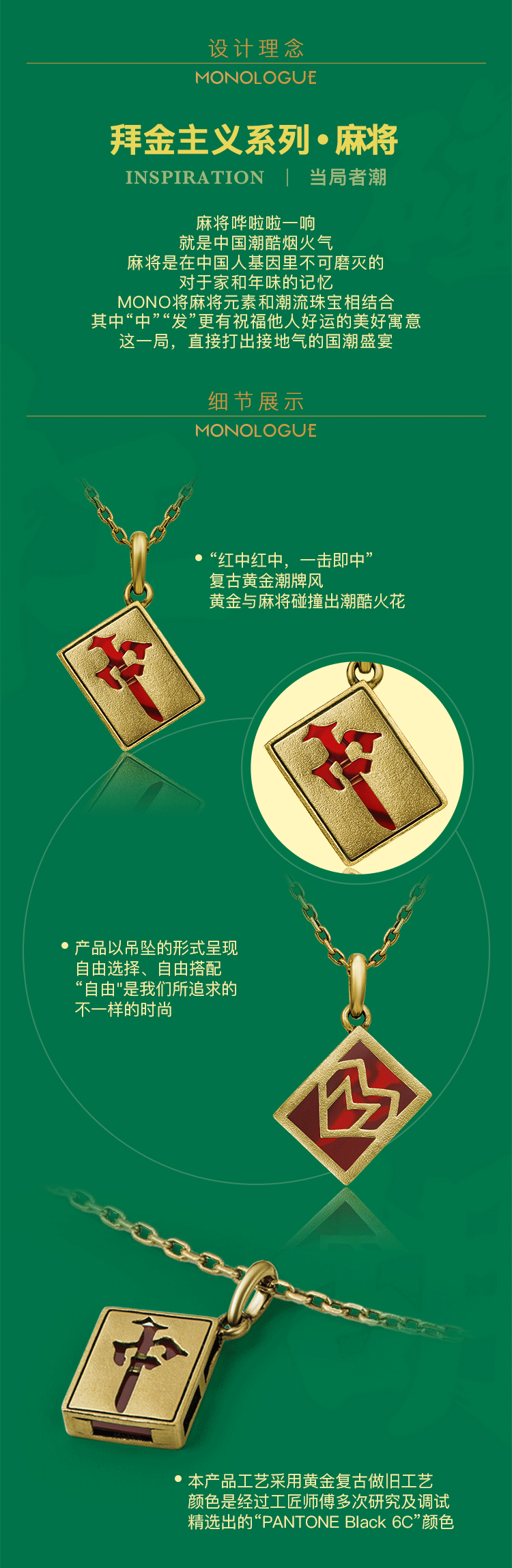周大福 Монолог материалистический авторитет Тенденция маджонга красная средняя нога золото черное золото подвеска Mr59 Подарок
