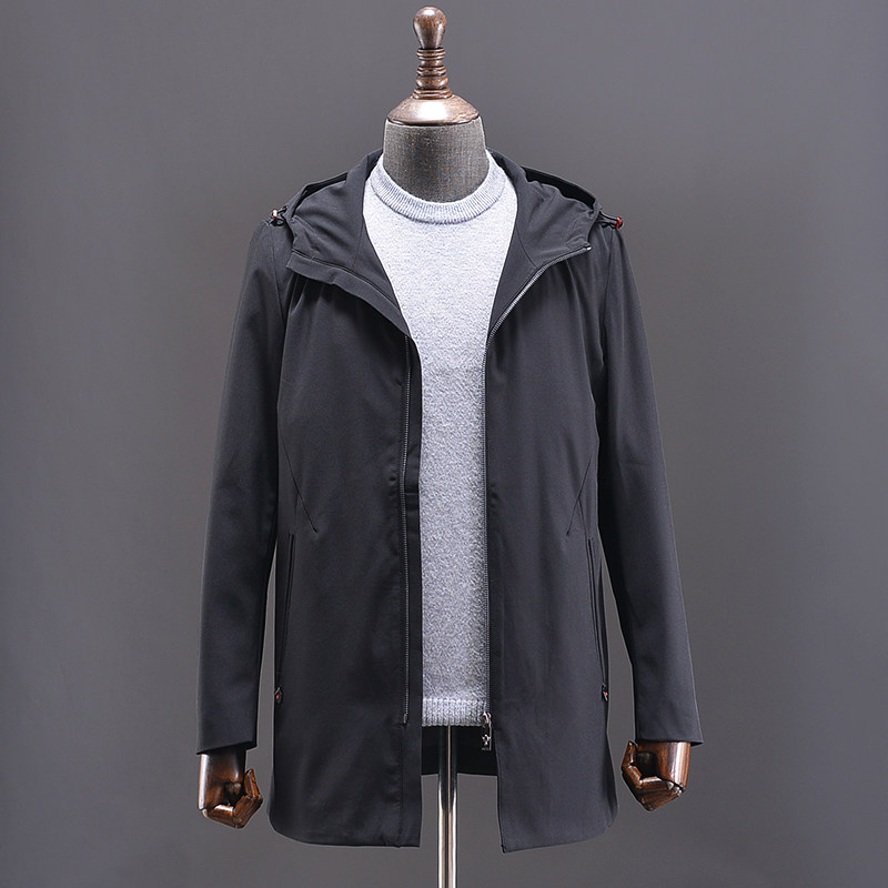 Осенняя черная куртка, универсальный приталенный плащ с капюшоном