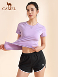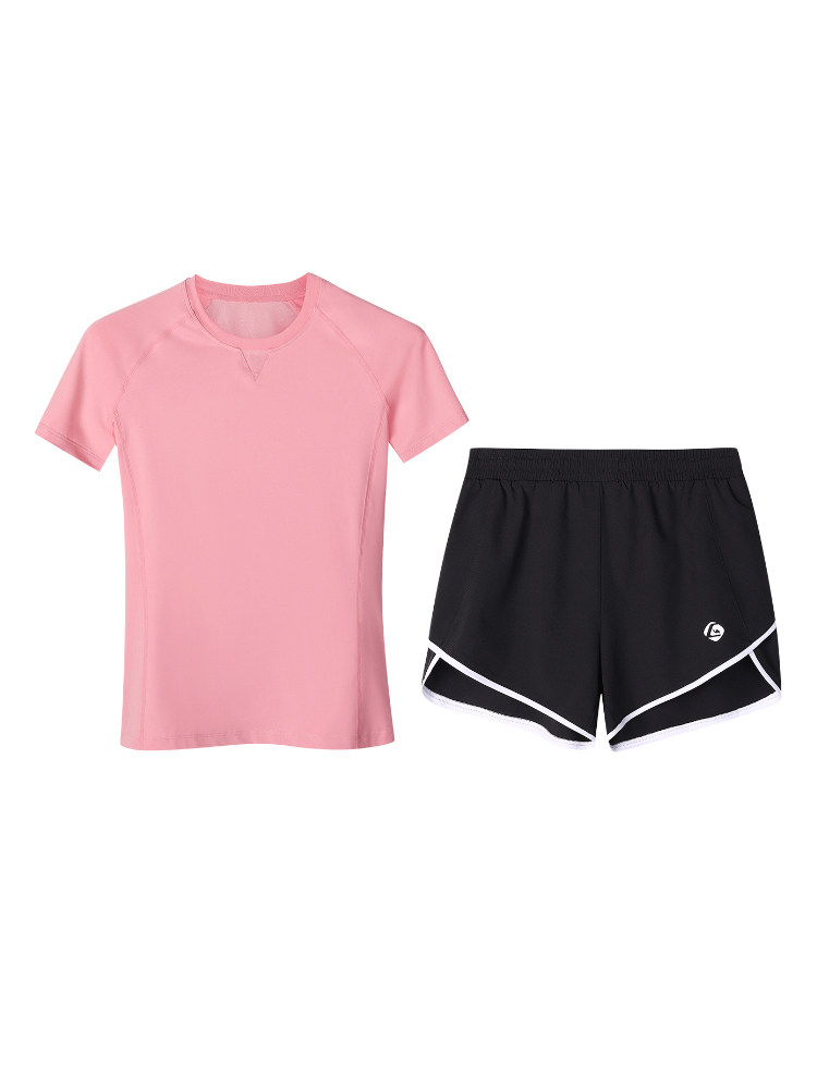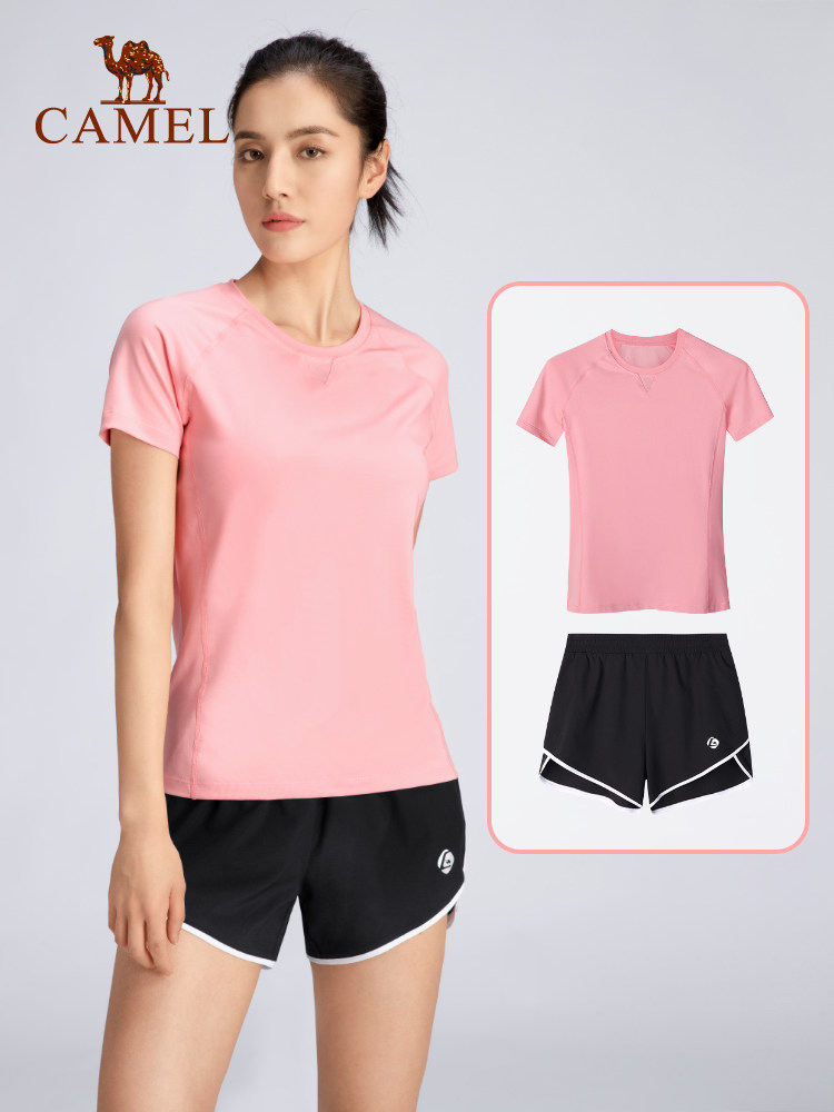 Спортивный костюм, футболка, шорты, комплект, одежда для йоги для спортзала, для бега, с акцентом на бедрах