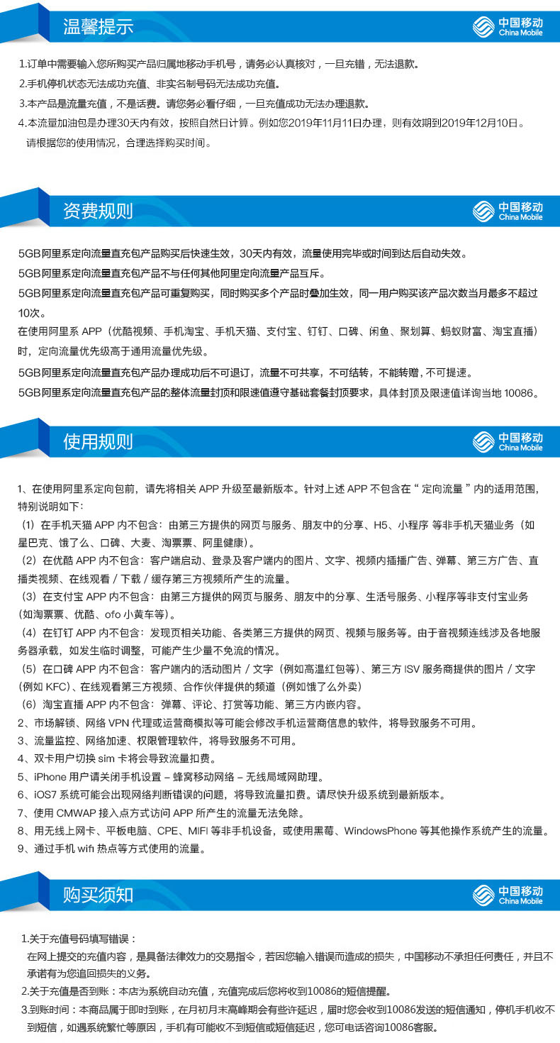 Guizhou Mobile Mobile Traffic Fast Зарядка пакет данных Ali Dingli 5 ГБ China Mobile
