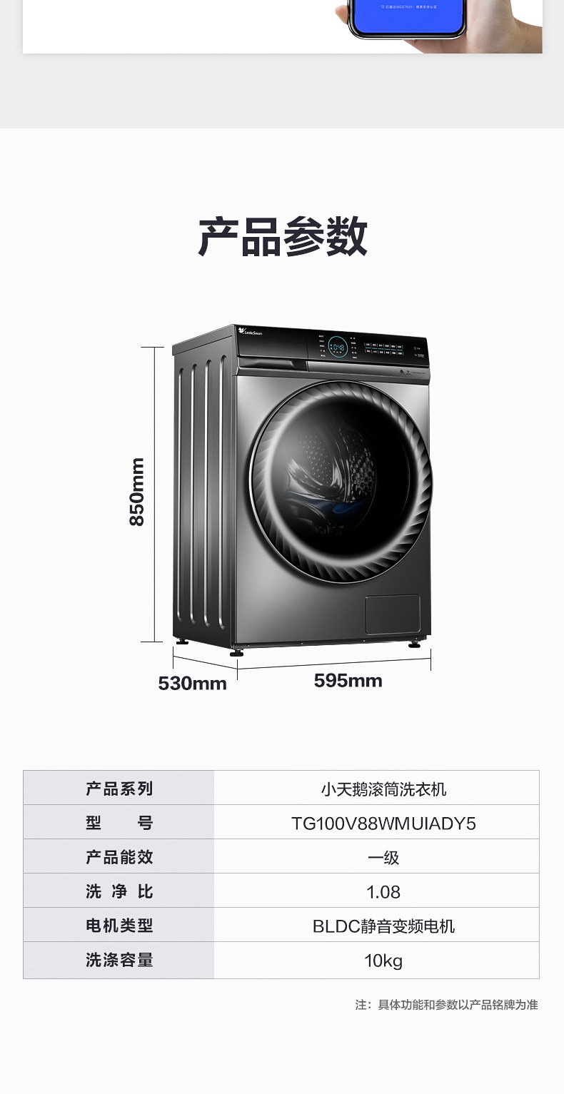 Маленькая барабанная стиральная машина полностью автоматическая интеллектуальная домашняя прибор 10 кг водный кубик инвертор TG100V88WMuiaDy5
