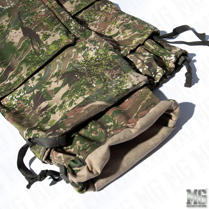 -Ноги брюк можно отрегулировать соответствующим образом (встроенные ремни, полосы луча и веревочные пробки, которые могут предотвратить мелких животных и т. Д.)
