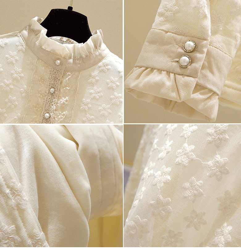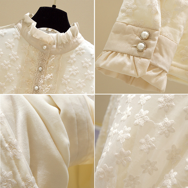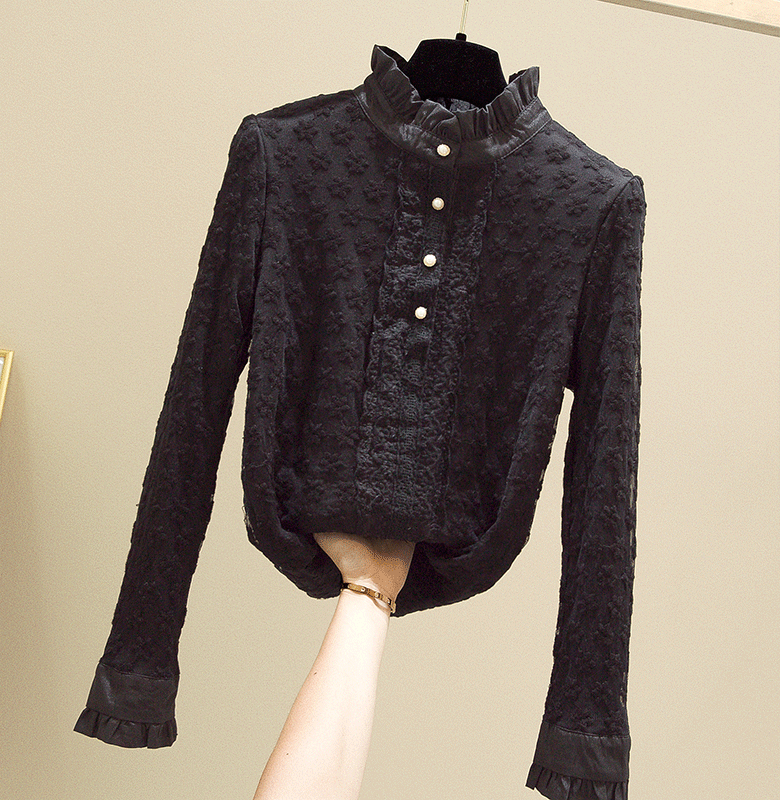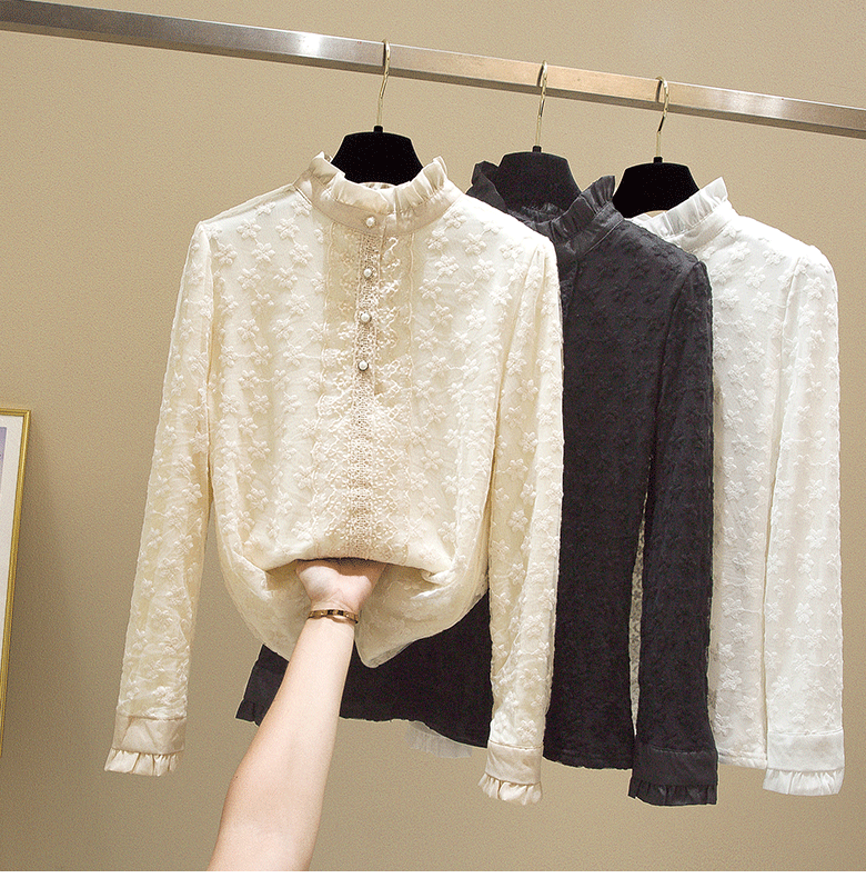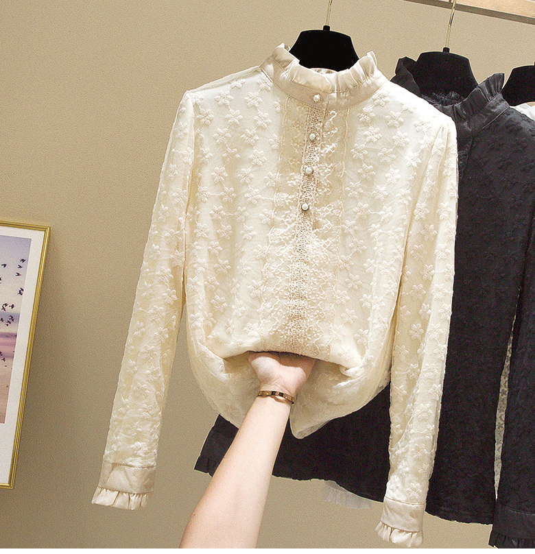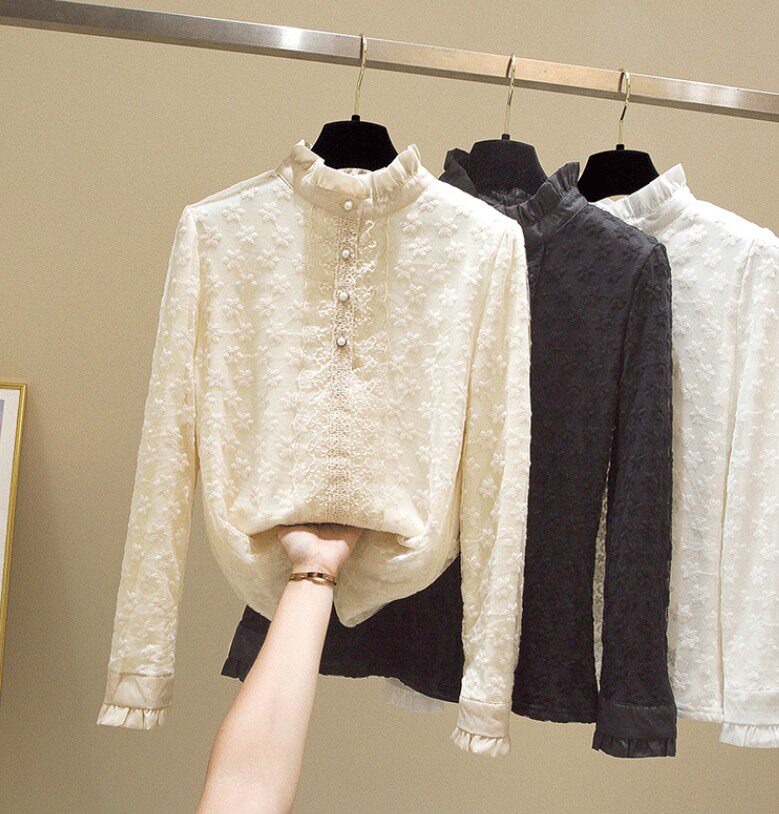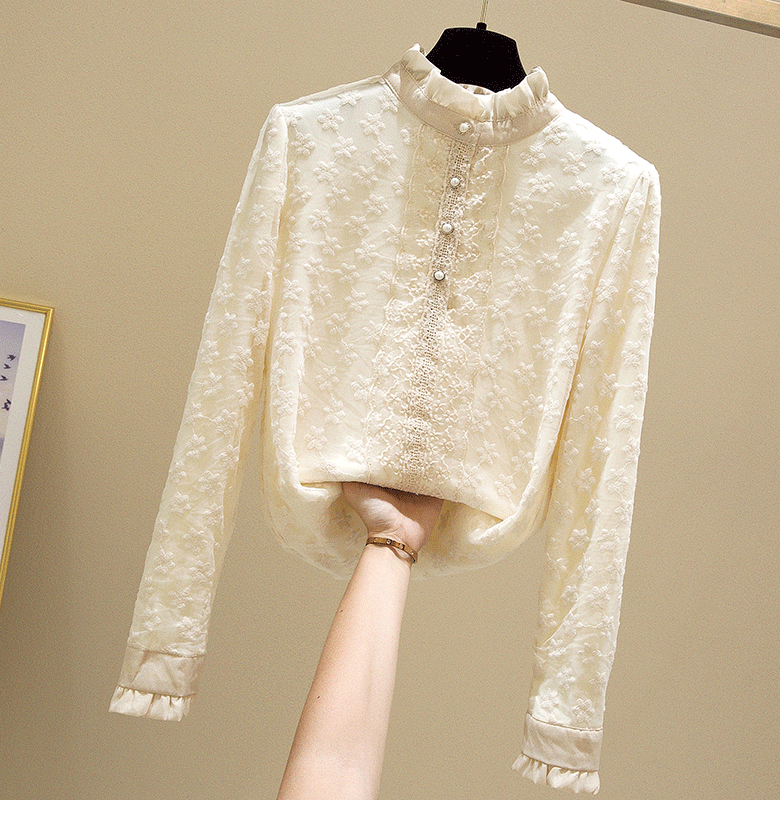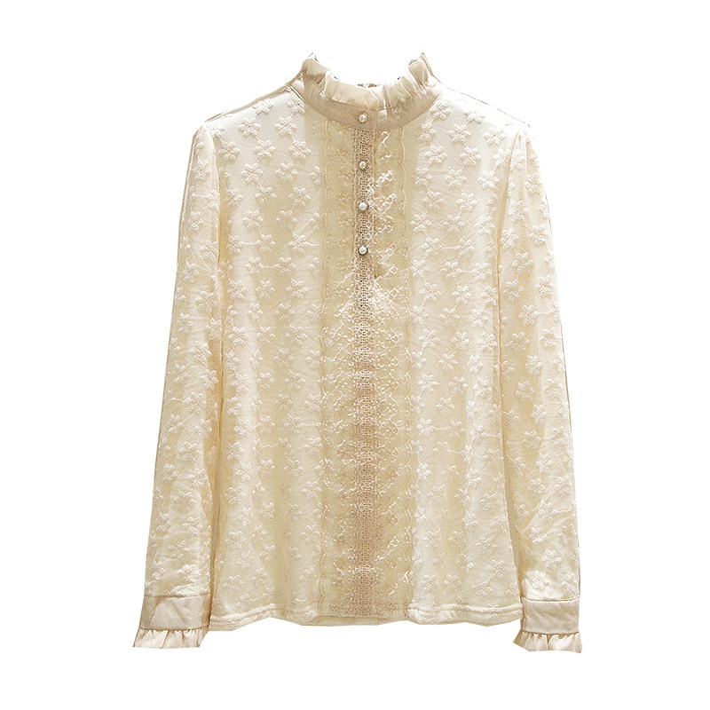 Кружевной шелковый приятный телу осенний модный лонгслив, рубашка, 2025 года