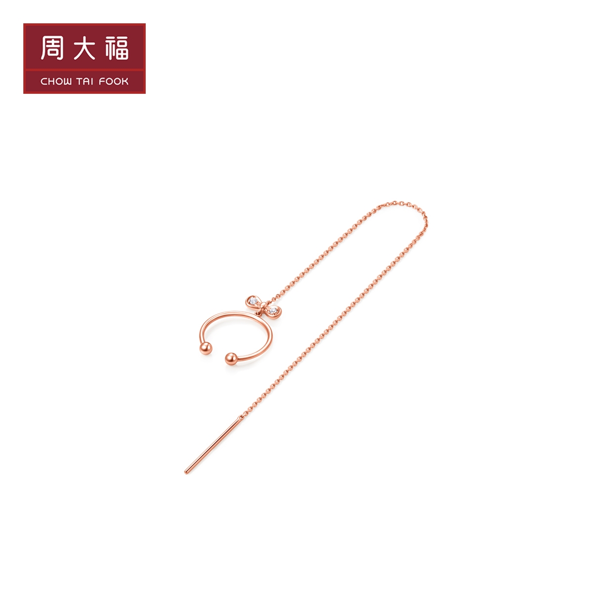 周大福 Милое ювелирное украшение с бантиком, серьги, золото 750 пробы
