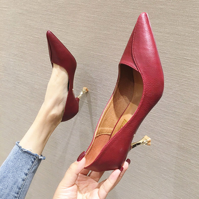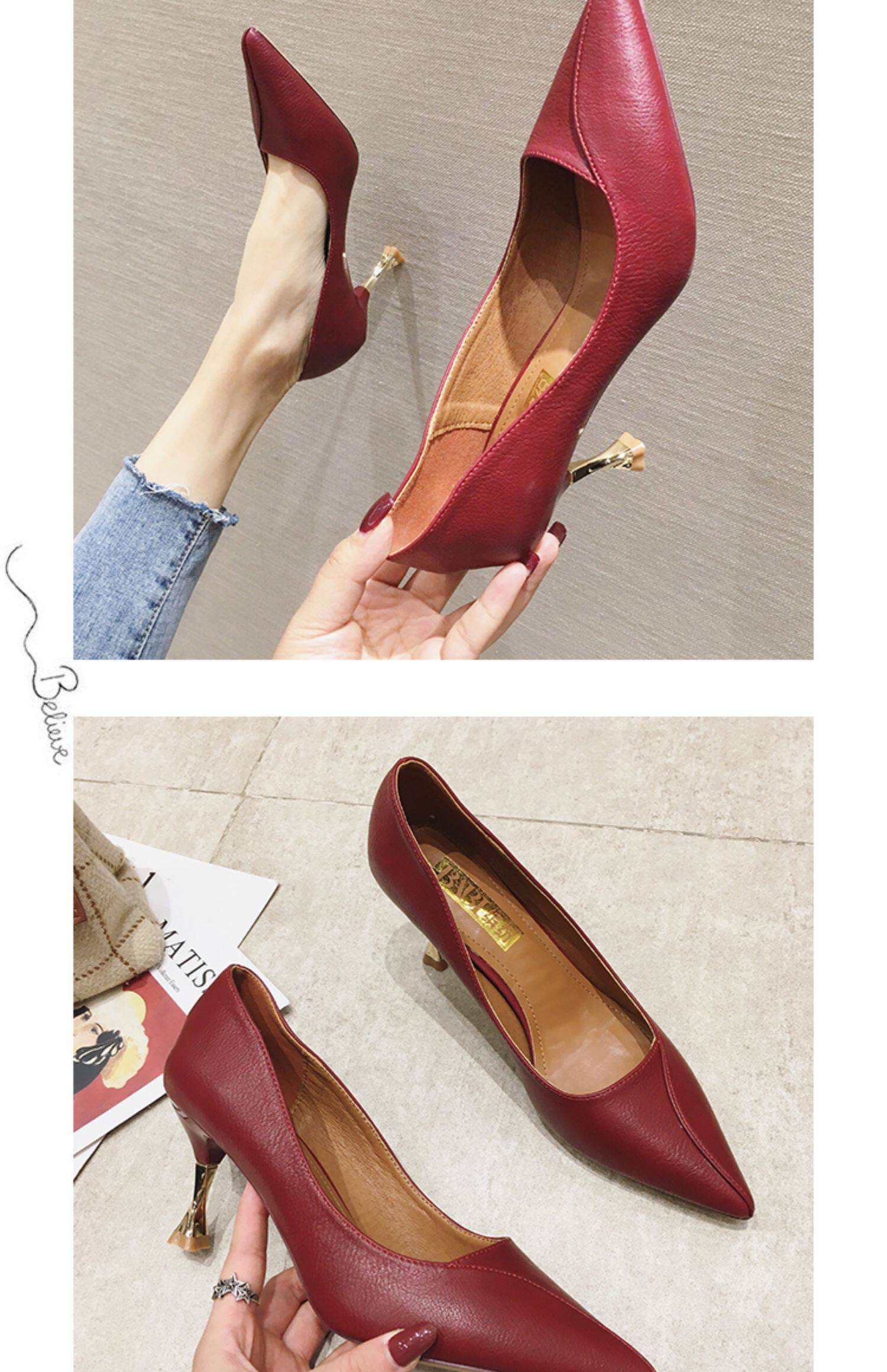 Туфли на высоком каблуке, демисезонная обувь, универсальные красные свадебные туфли с заостренным носом, 2019