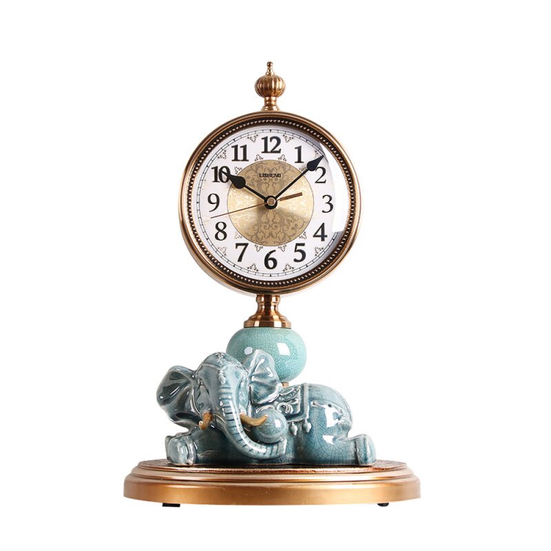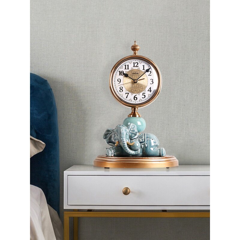 Слоновый керамический орнамент часы металлические часы сиденья в северной гостиной Home Fashion Creative Desktop Тихий европейский настольный в стиле часы