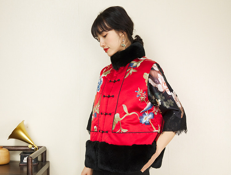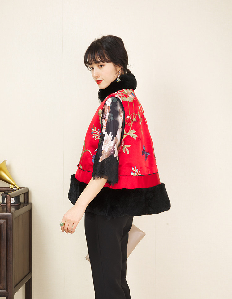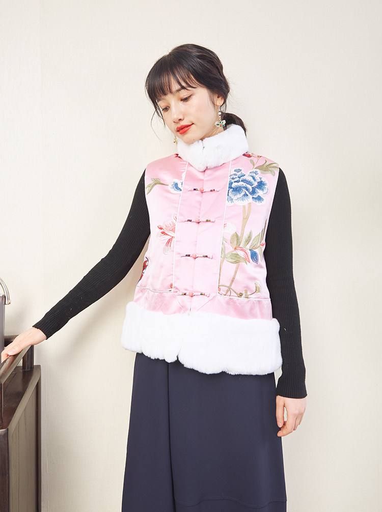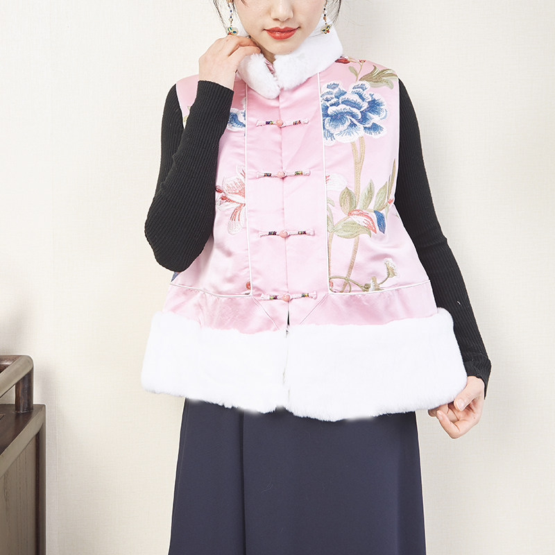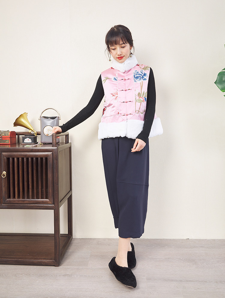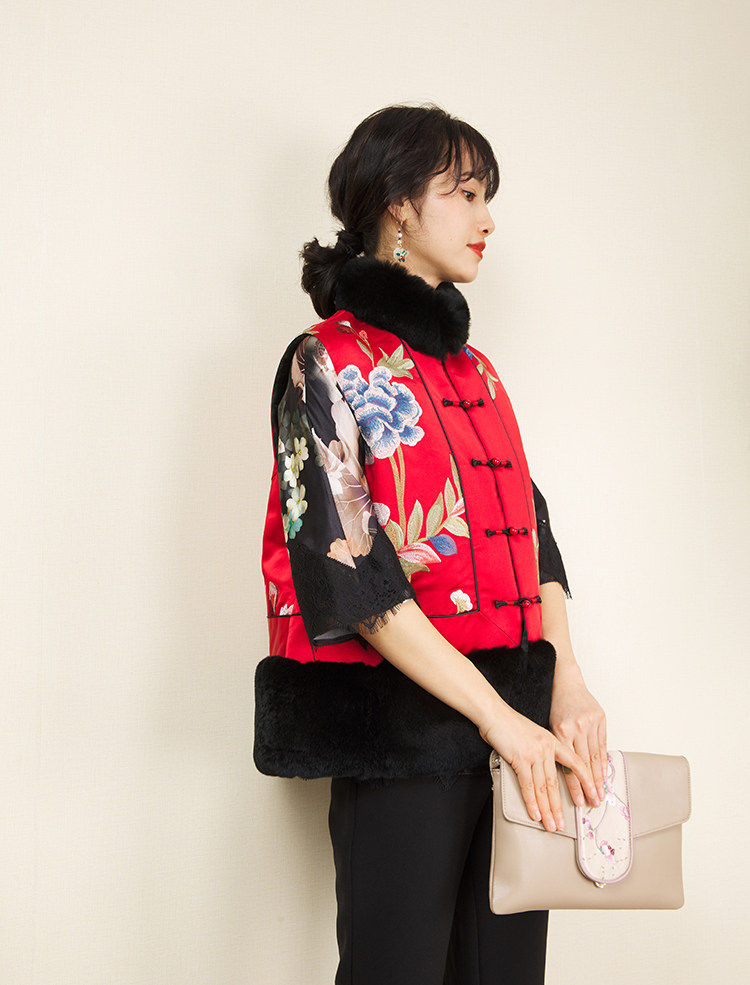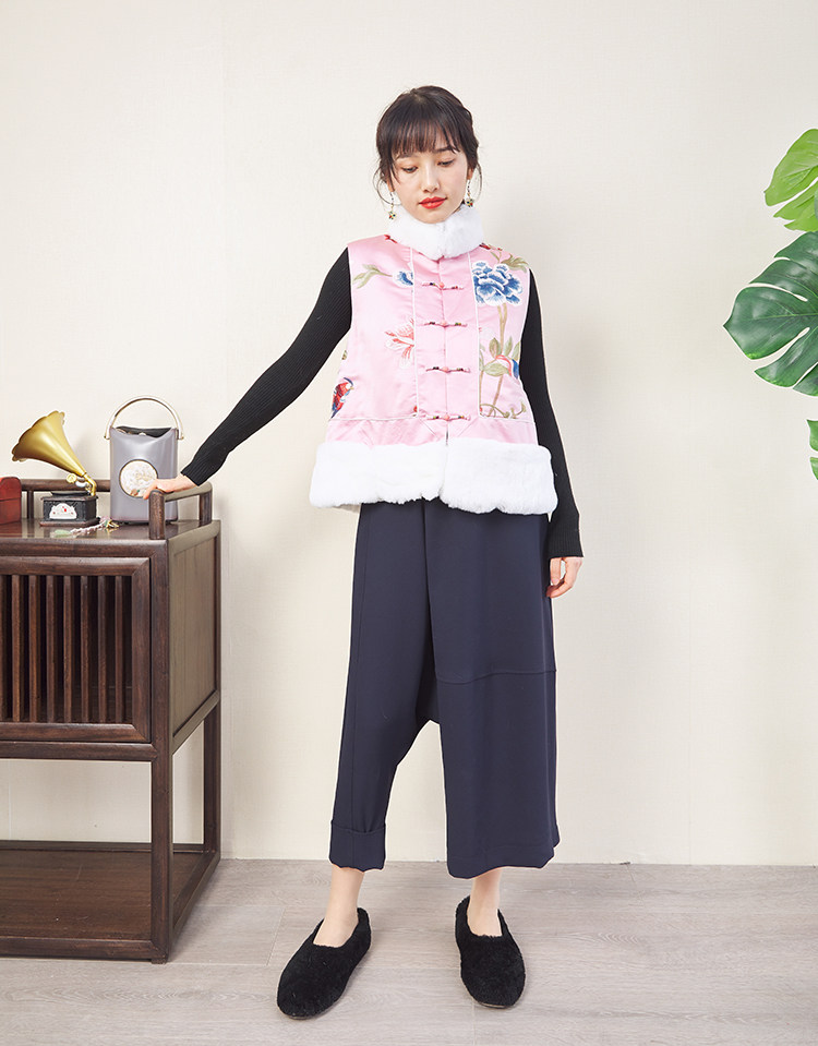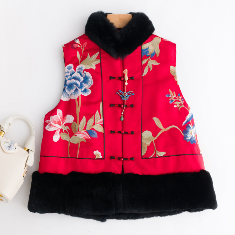 CPP614 Осень и зима новые продукты китайская REX Rabbit Blind Plate Цветочная вышивка цветочные жилеты Малайзия короткие хлопковые жилетки женщины