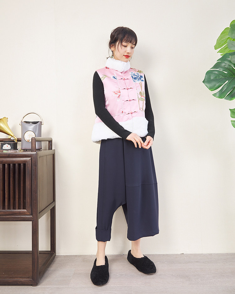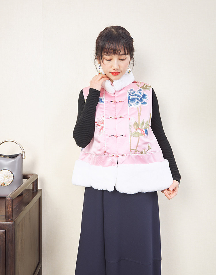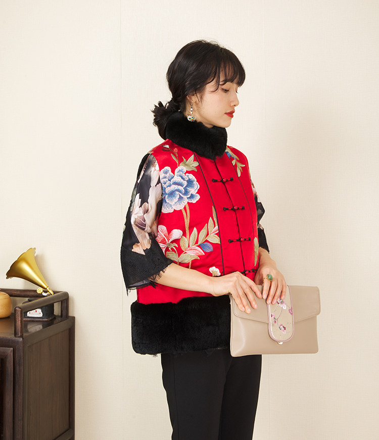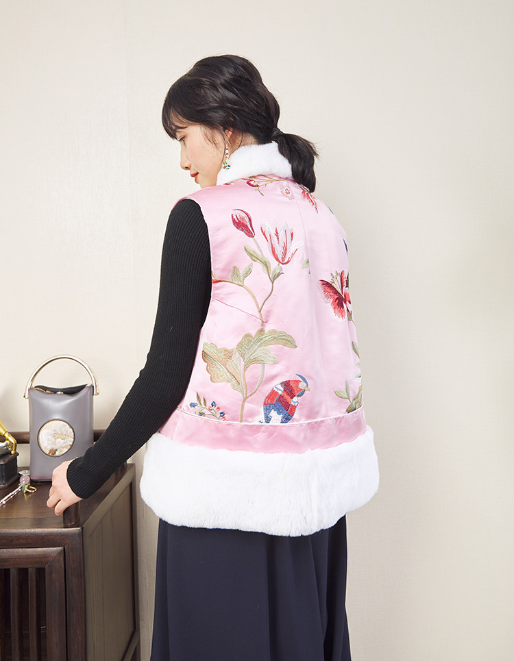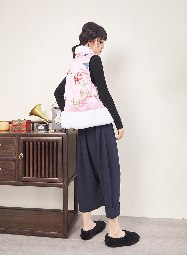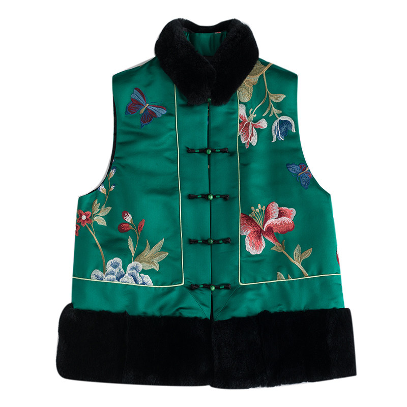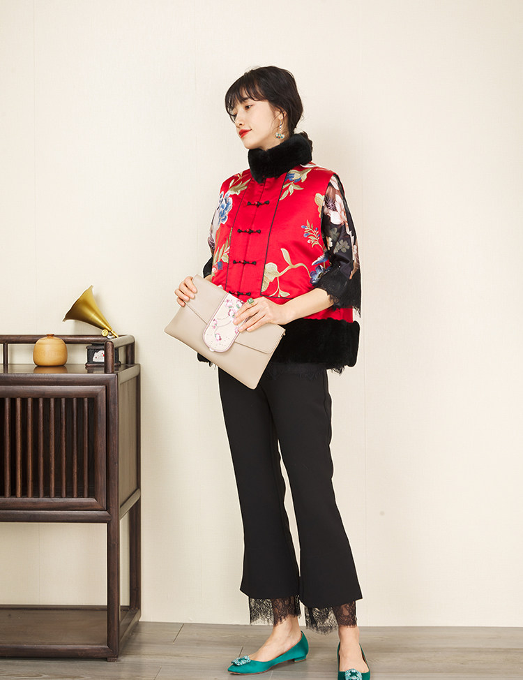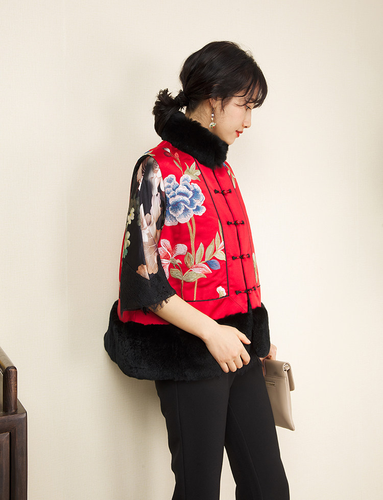 CPP614 Осень и зима новые продукты китайская REX Rabbit Blind Plate Цветочная вышивка цветочные жилеты Малайзия короткие хлопковые жилетки женщины