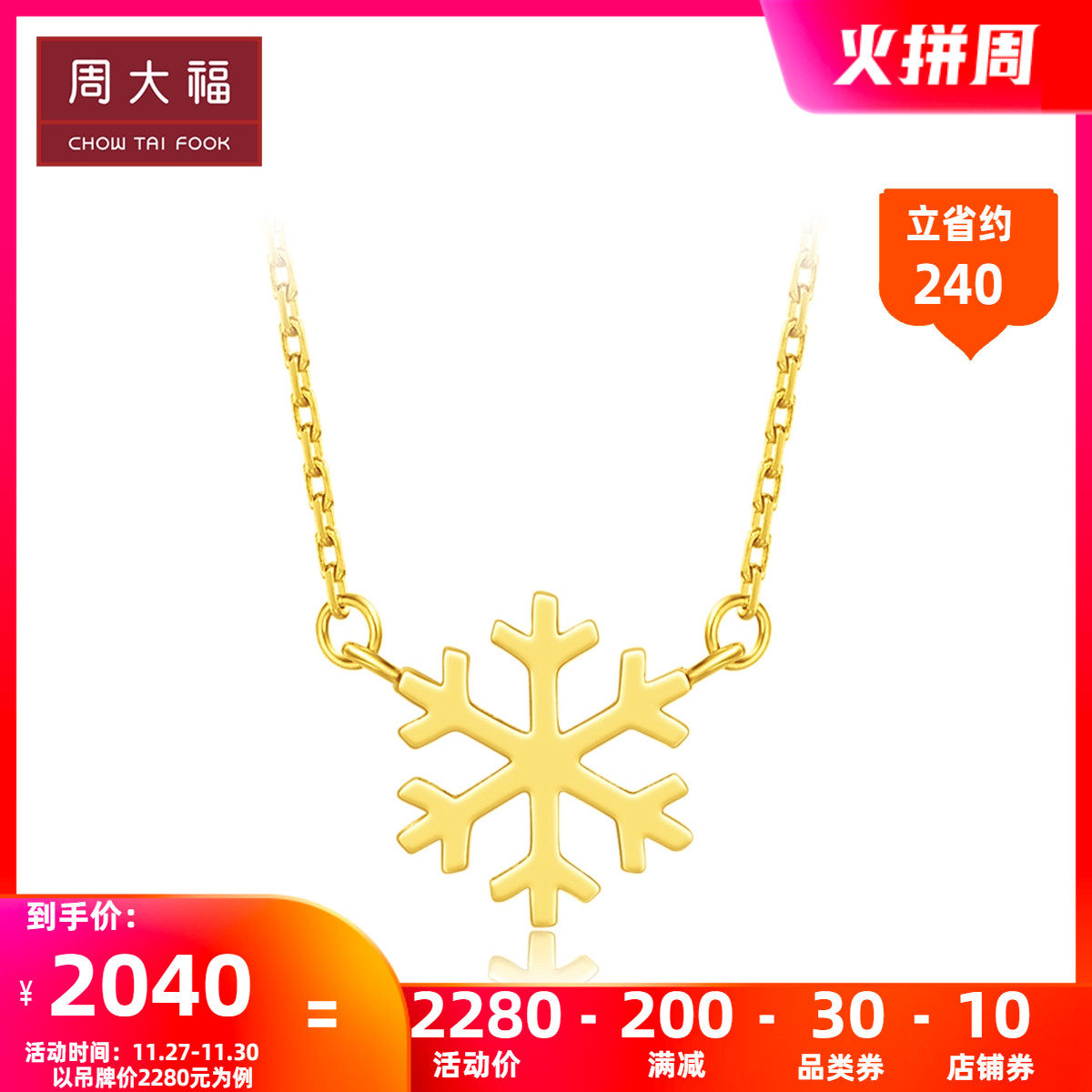 周大福 17916 серия Рождественская снежинка 22K Золотое ожерелье E1230920 Специальное предложение