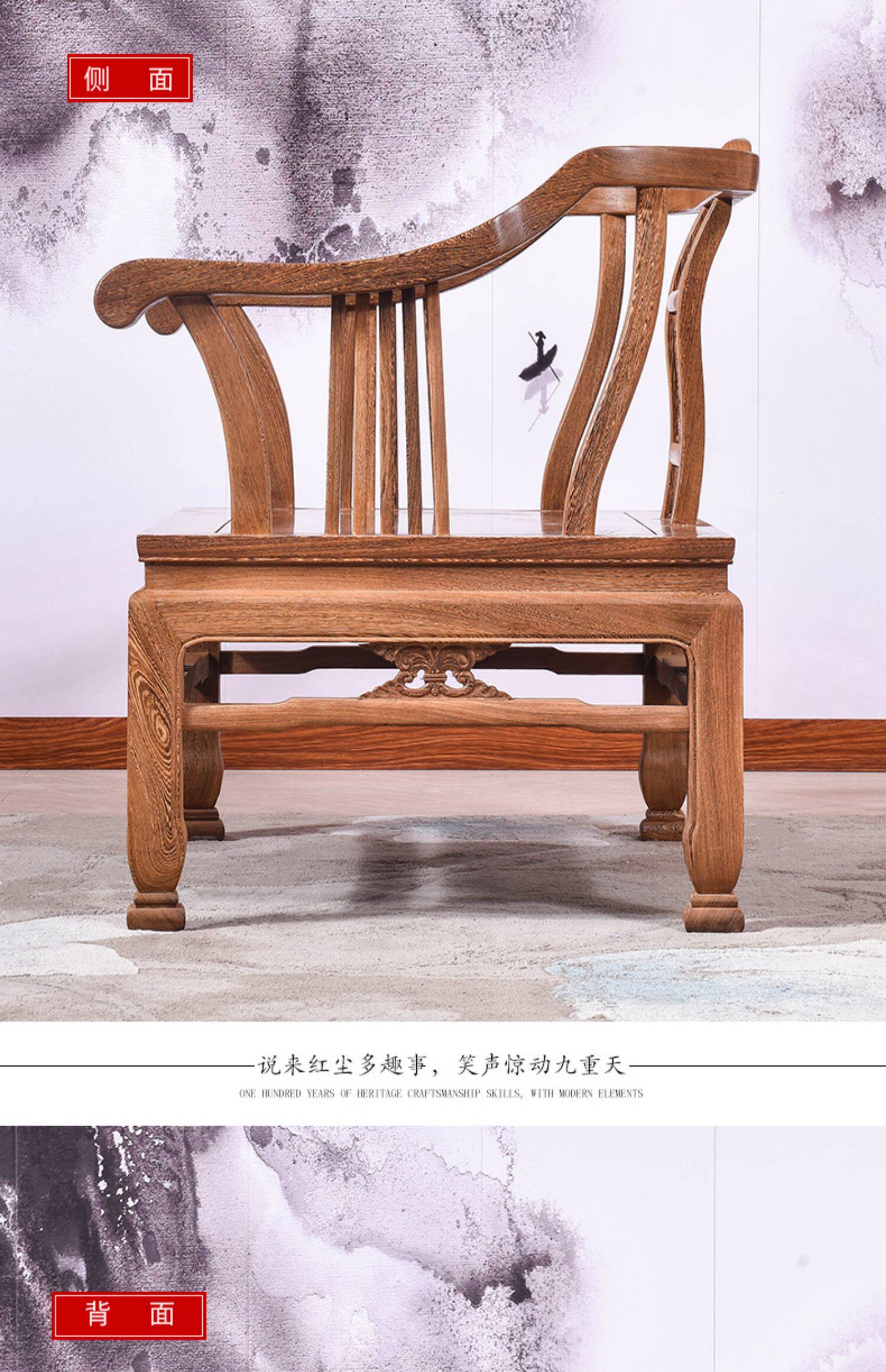 Куриное крыло му mi li sian zen стул на вырез с твердым древесином, Семейное семейное семейное мажогарное сиденье для взрослых