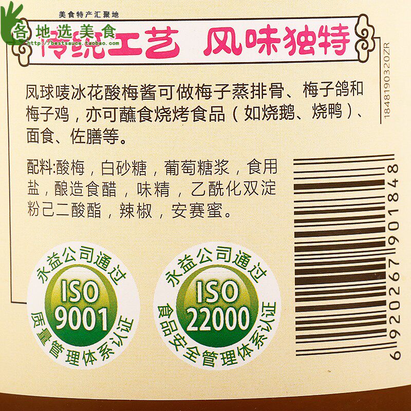 Ингредиенты: слива, белый сахар, клейкий сироп, съедобная соль, пивоваренный уксус, глутамат монозодий, ацетилизованный двойной хэм -дилат, перец, ацеми и т. Д., Фактическая информация о внешней упаковке продукта подлежит.