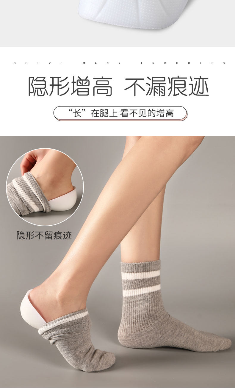 Стельки для увеличения роста подходит для мужчин и женщин, невидимые спортивные напяточники, нескользящие силиконовые полустельки, носки