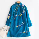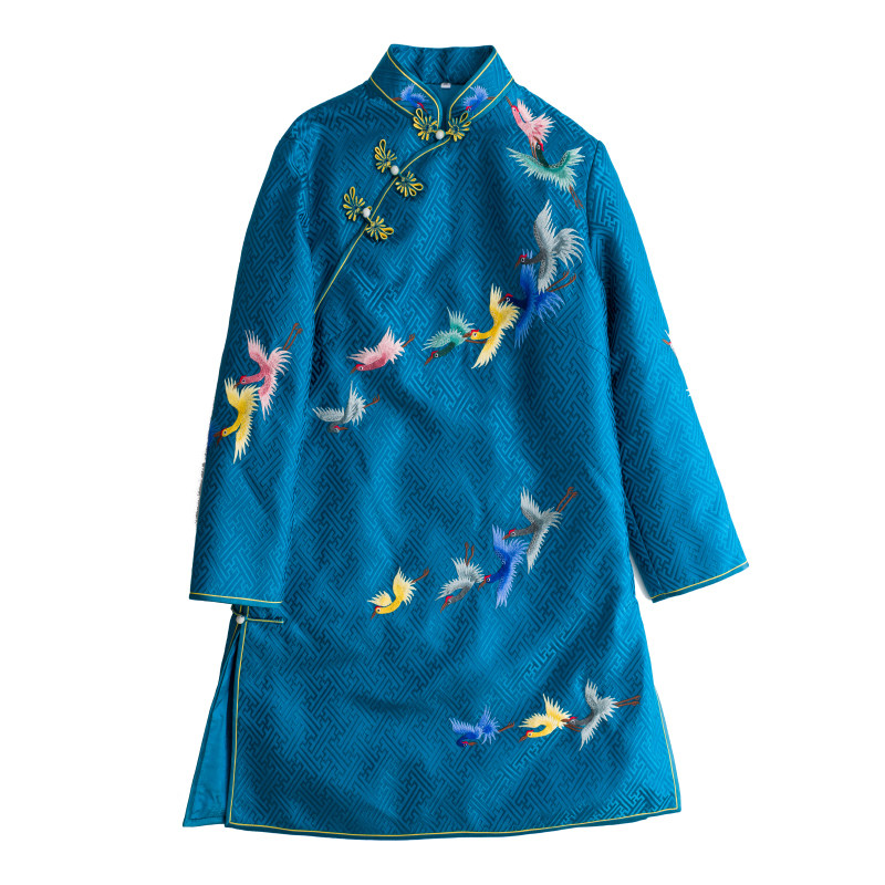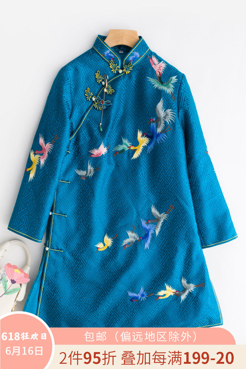 Демисезонное ретро длинное ханьфу, китайский стиль, с вышивкой