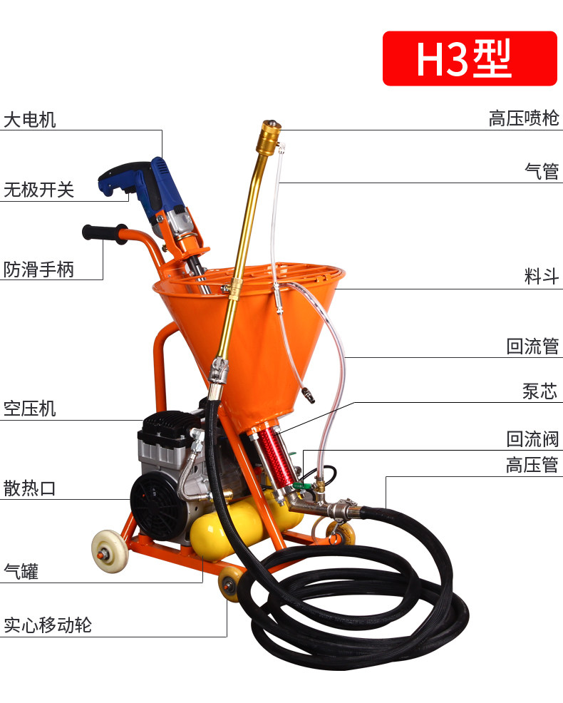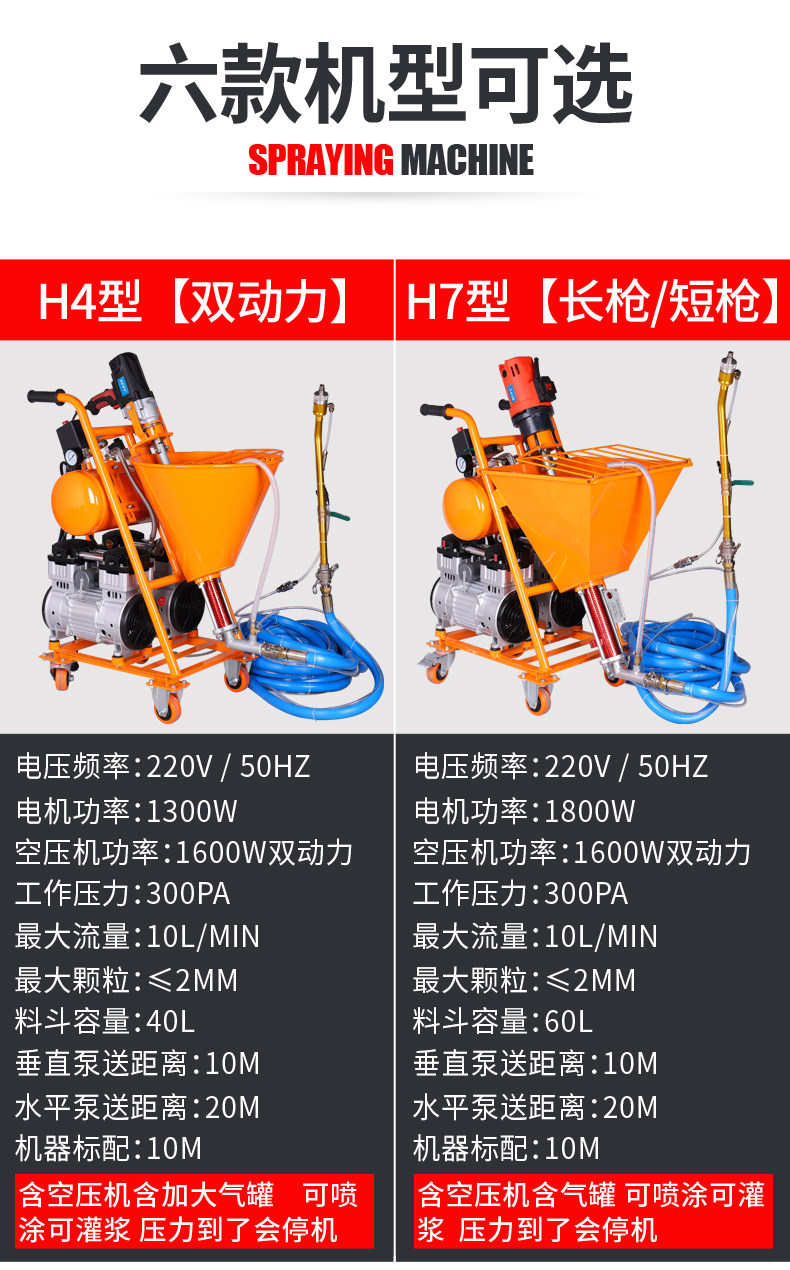 | Цвет: | H1 стандартно поставляется без воздушного компрессора, H2 стандартно поставляется с воздушным компрессором одинарной мощности., Стандартная конфигурация H3 включает воздушный компрессор + резервуар для хранения газа, одинарный источник питания., H4 оснащен воздушным компрессором+повышенная моноклональная мощность воздушного бака, H4 оснащен воздушным компрессором+двойной энергией для увеличения бензобака, H7 стандартно поставляется с воздушным компрессором + увеличенным бензобаком двойной мощности (длинный пистолет) и может быть окрашен настоящей каменной краской., Стандартная конфигурация H7 включает воздушный компрессор + увеличенный бензобак двойной мощности (короткий пистолет), который может распылять настоящую каменную краску., Новый H7 стандартно поставляется с воздушным компрессором + увеличенным бензобаком двойной мощности (длинный пистолет), на который можно распылять настоящую каменную краску., Новый H7 стандартно поставляется с воздушным компрессором + увеличенным бензобаком двойной мощности (короткий пистолет), на который можно распылять настоящую каменную краску. |