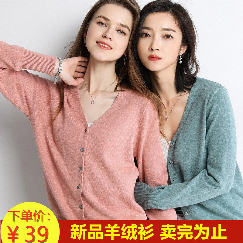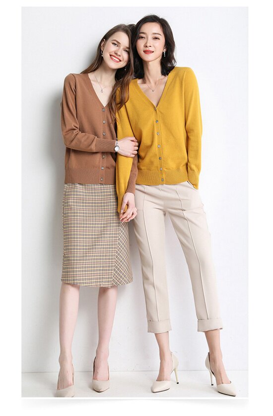Кашемировый трикотажный кардиган, шерстяной короткий тонкий свитер, куртка, V-образный вырез