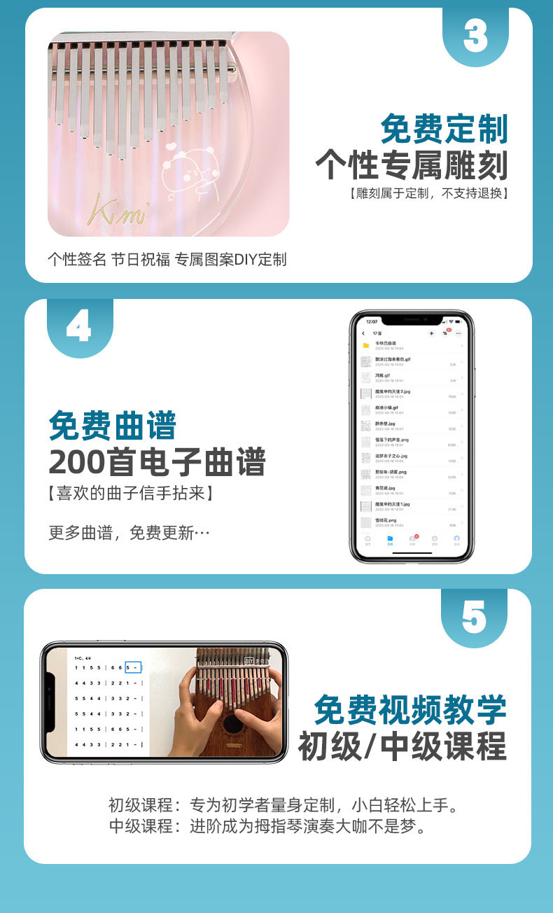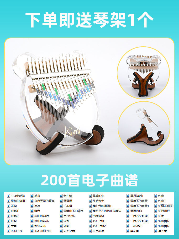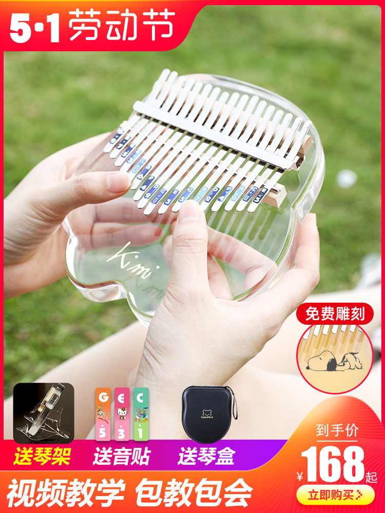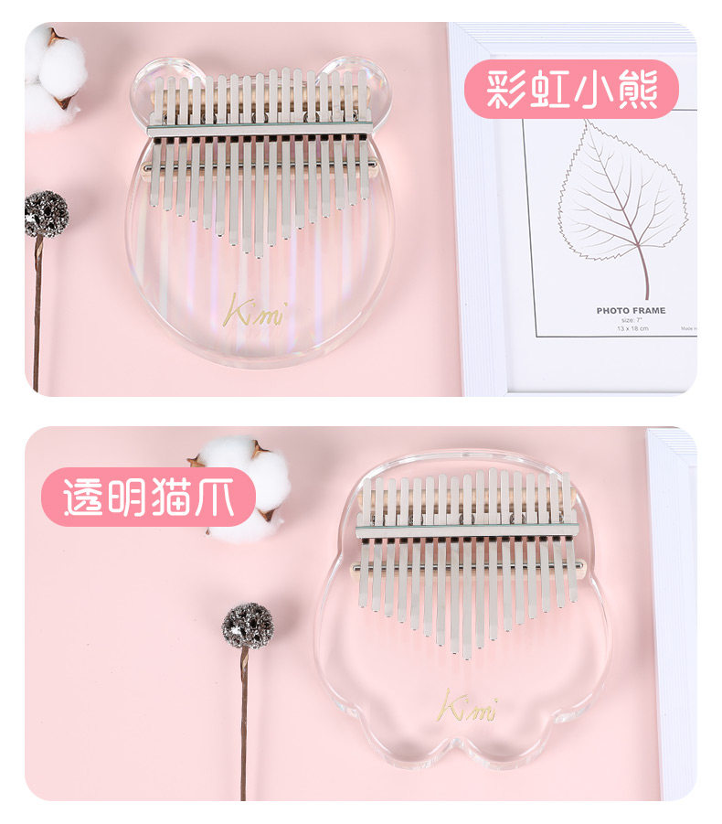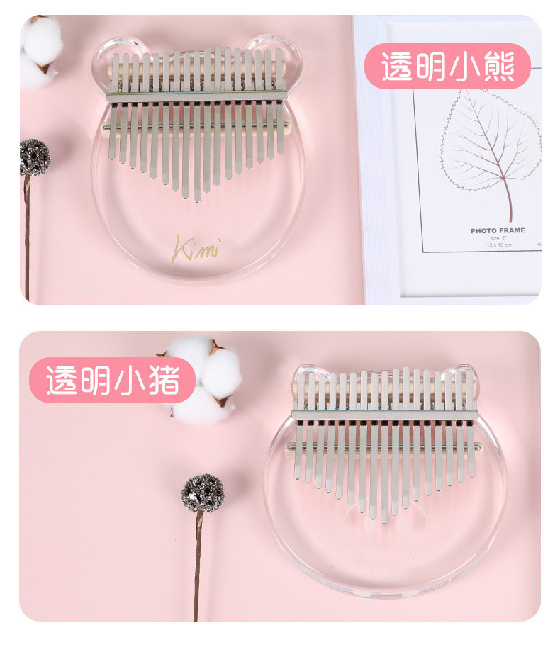 Кими -красотка кристалл прозрачный мини -пальцем пианино Калинба мать указала на начинающих фортепиано 17 тональных пианино медведей
