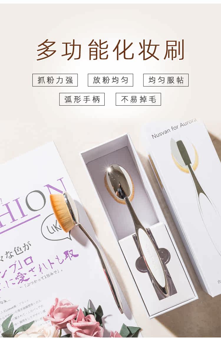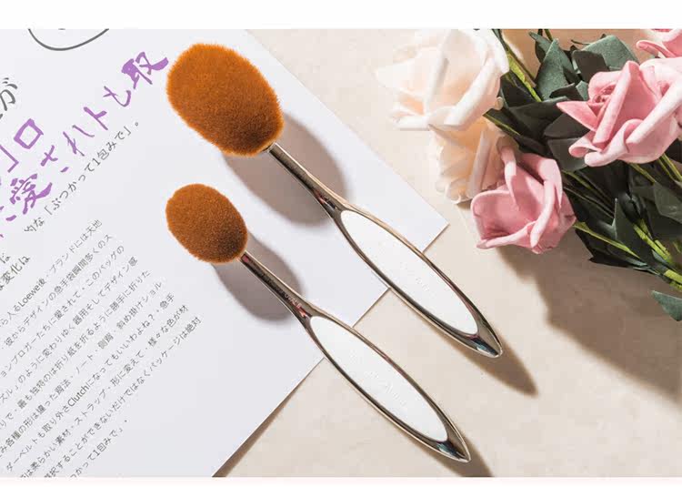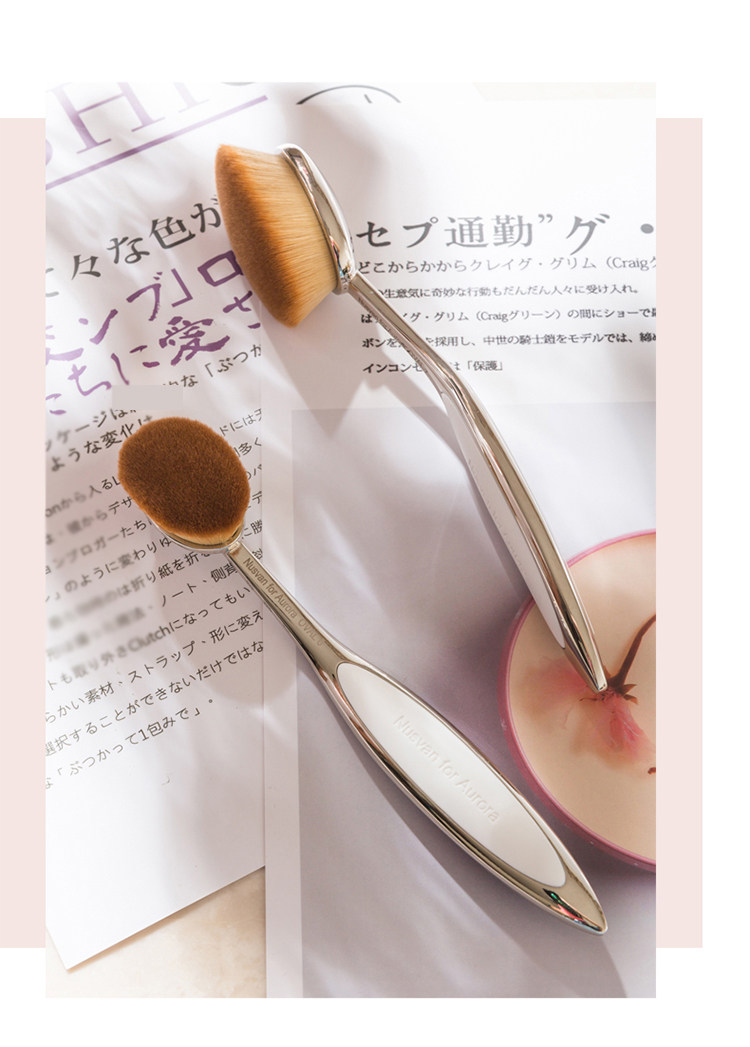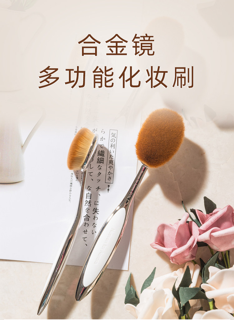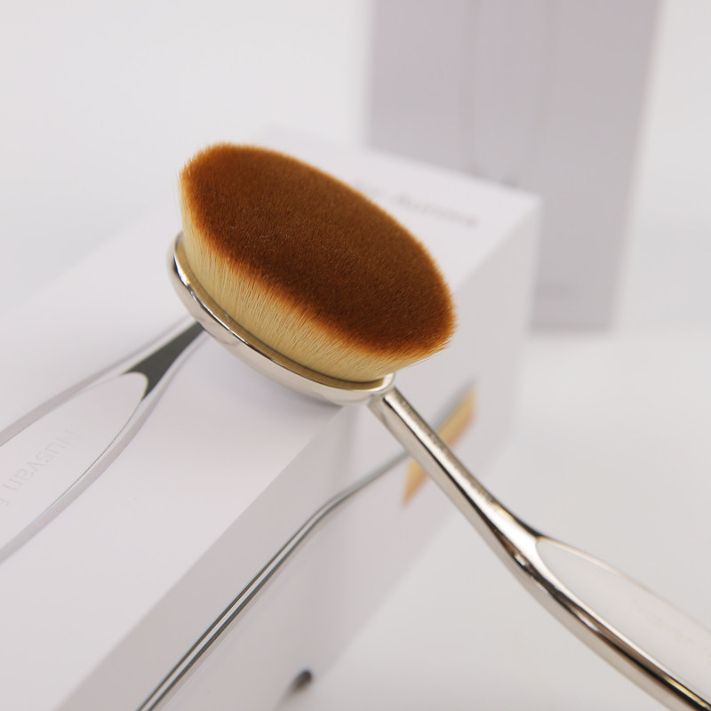 Металлический тональный крем, универсальная кисть, румяна