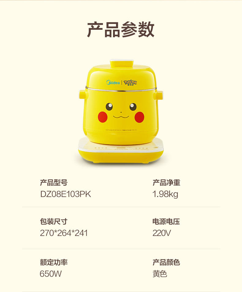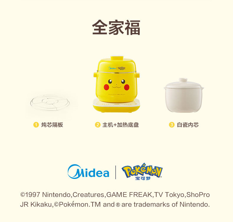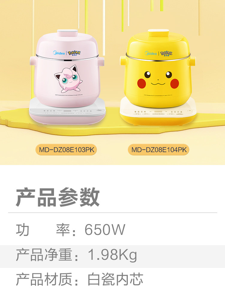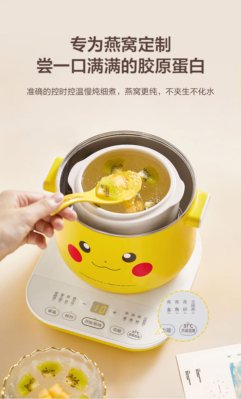 Электрическое тушеное мясо Meimei Pikachu Pokémon Dreaming Skinth Stew Pot Pot Pot Soupe Pot Bird Gnest Pot 08e103pk