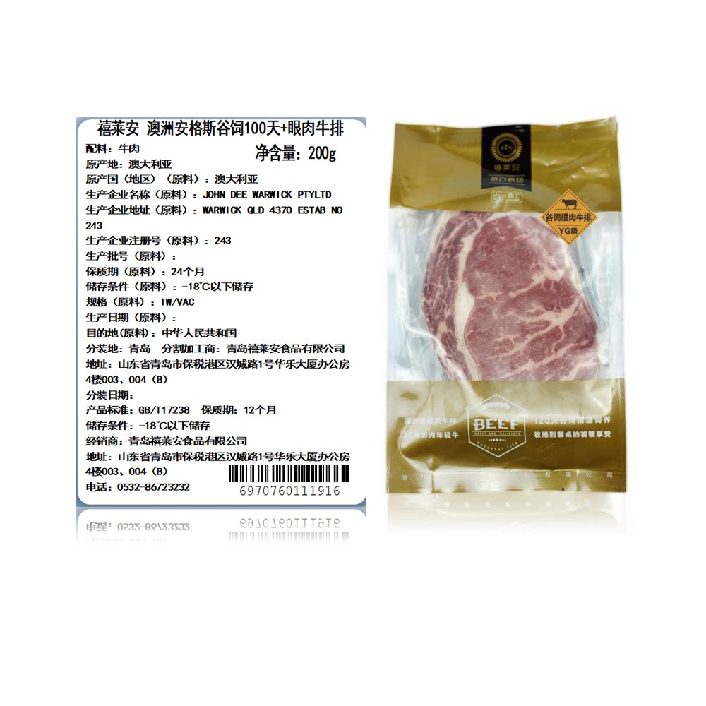 Xilaian Australian Angus Valley Feed в течение 100 дней + стейк из говядины Eye 200g