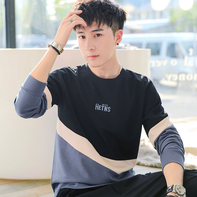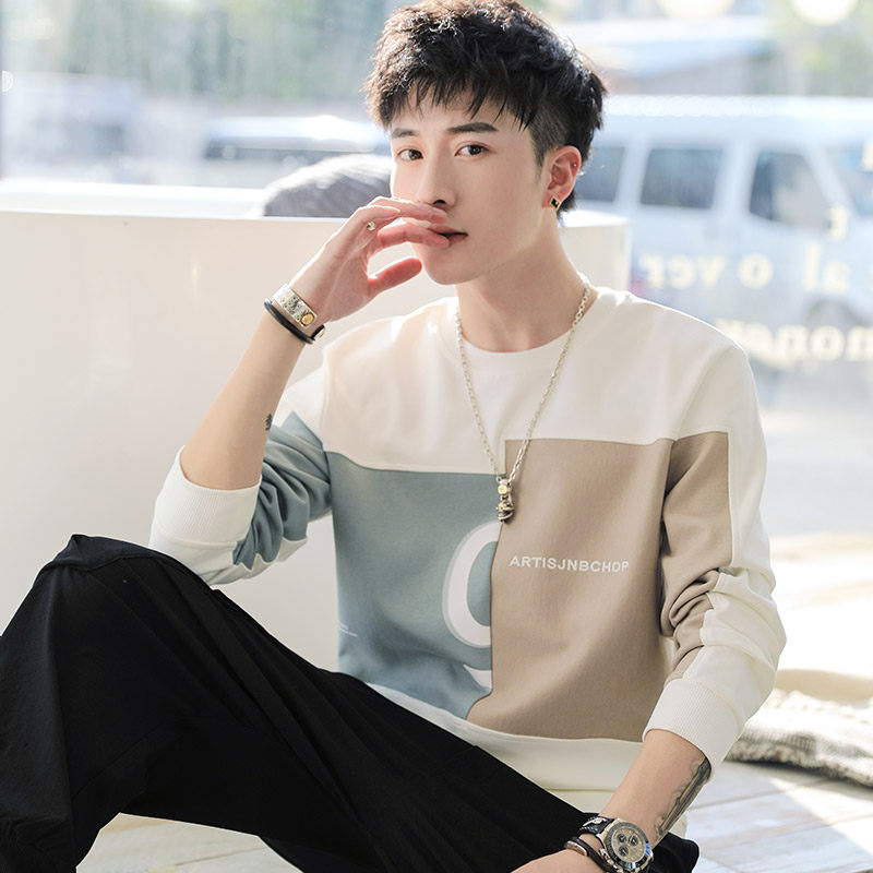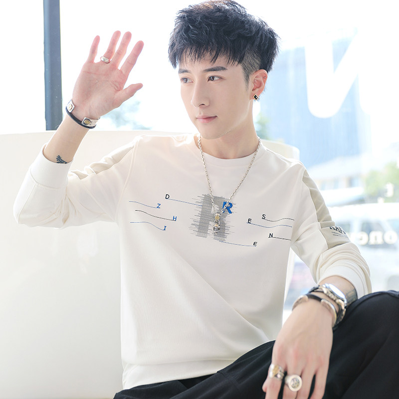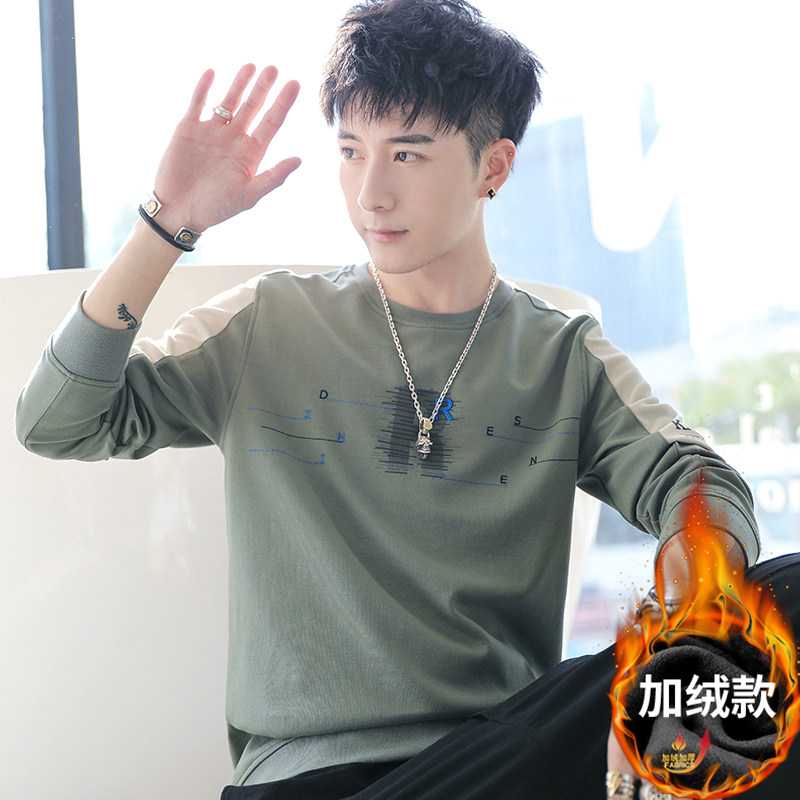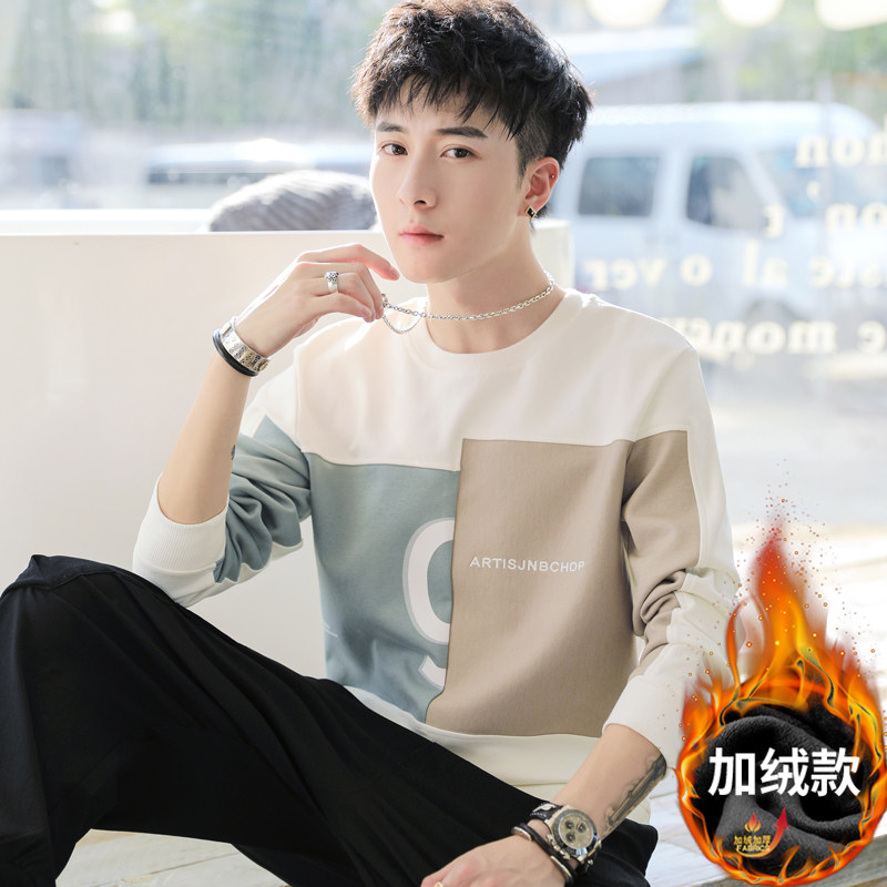 Мужская трендовая толстовка с круглым воротником, демисезонный утепленный модный лонгслив, в корейском стиле, оверсайз