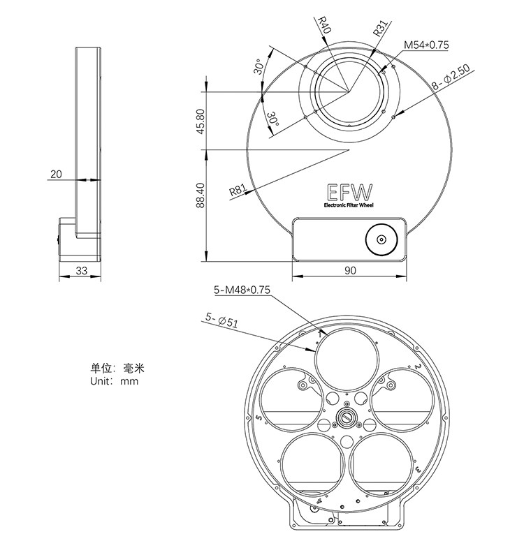 ZWO 2 -INCH EFW ELECTRIC FILTER WHELE 7 и 5 -HOLE 2 -INCH FILTER