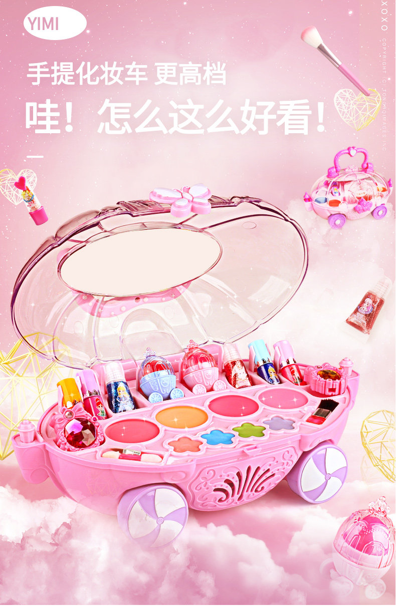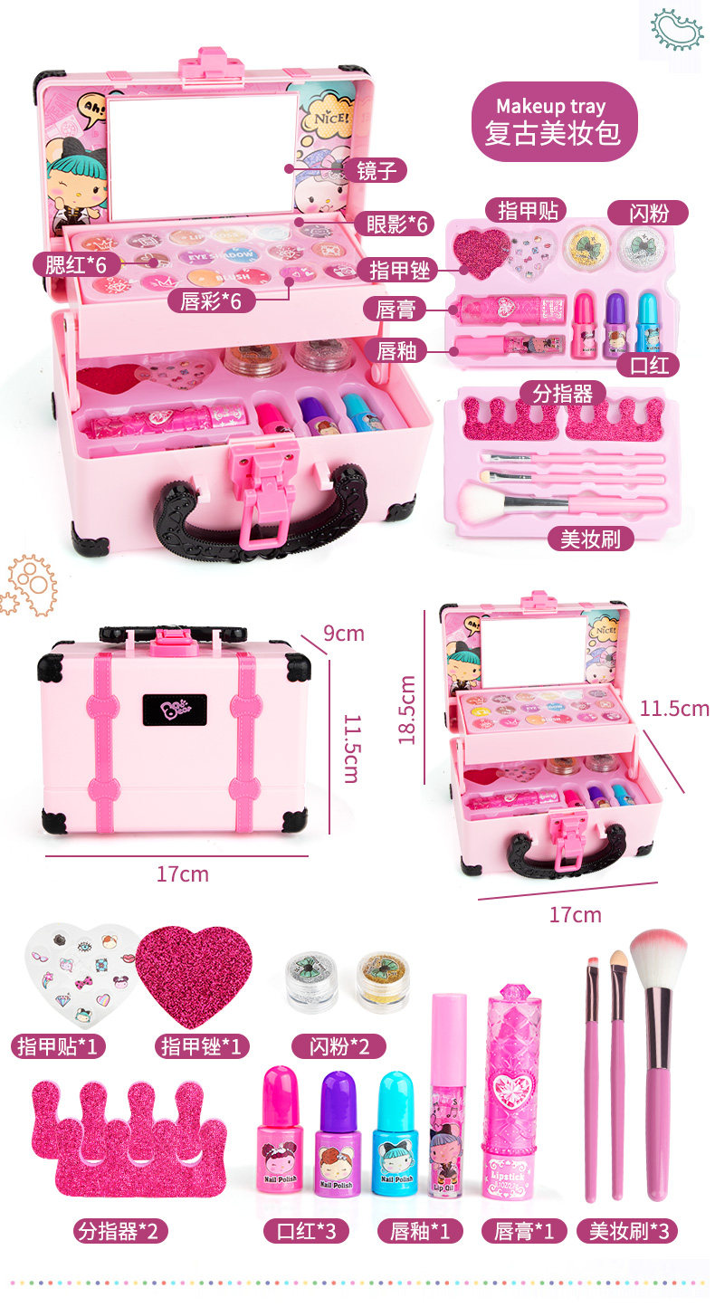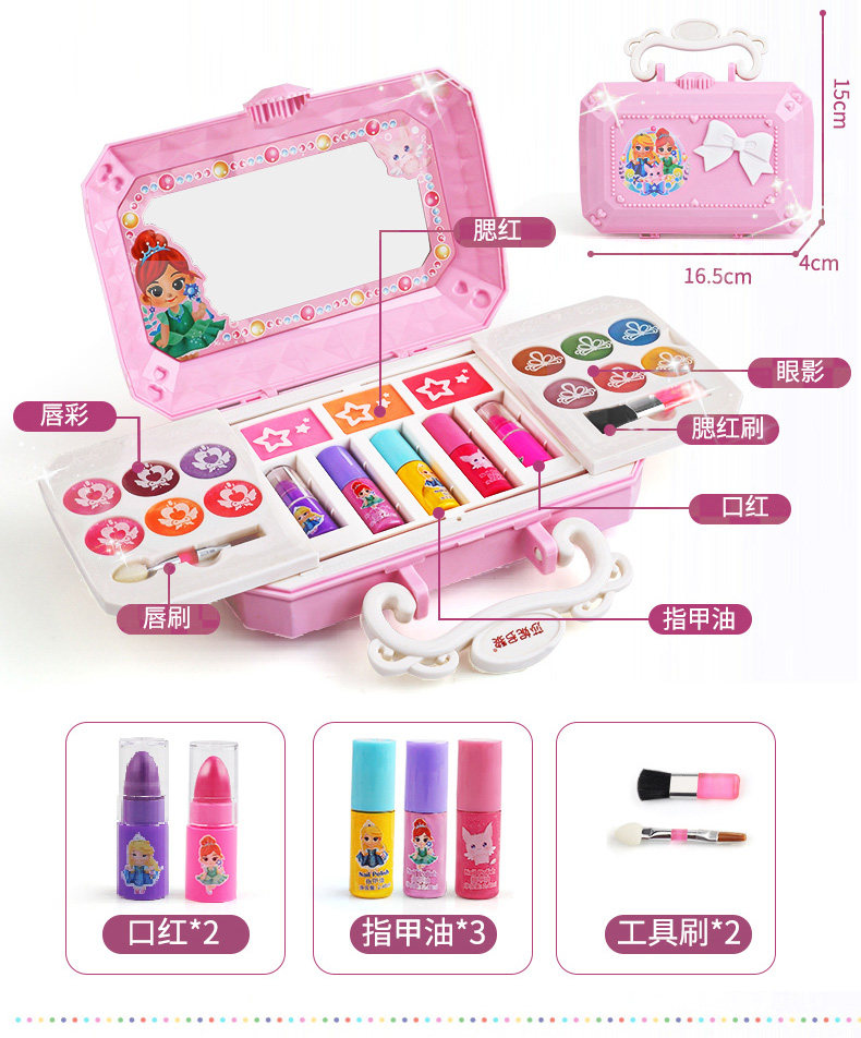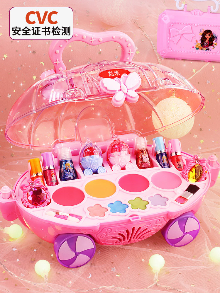 Игрушка для макияжа, нетоксичный комплект, детская база под макияж, коробка для косметики, лак для ногтей, подарок на день рождения