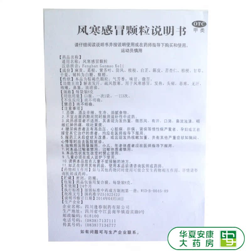 逢春堂 Ветровые холодные гранулы 8G*10 мешков/коробки Ветром Холодная тепловая головная боль, кашель, жидкий нос HX