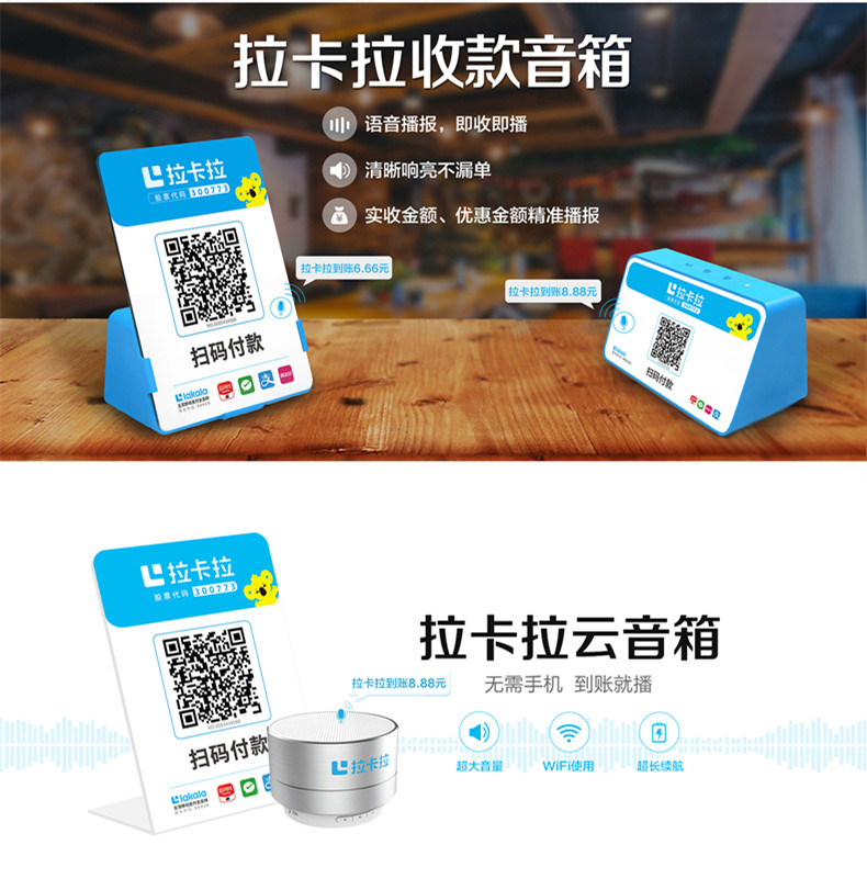 拉卡拉 Облачный динамик голосовой трансляционный устройство Alipay WeChat QR -код сканирование кода Код кода сканирования для сбора денег Код коллекции торговых значений Taiwan Card Code Collection