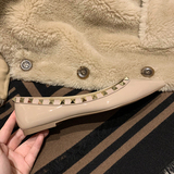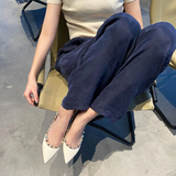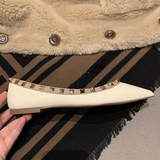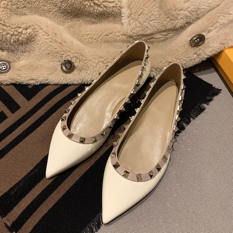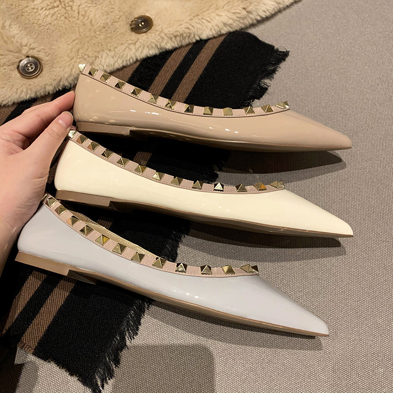 Весенняя плоская подошва модная универсальная обувь с низким вырезом с заостренным носом, с шипами, из натуральной кожи