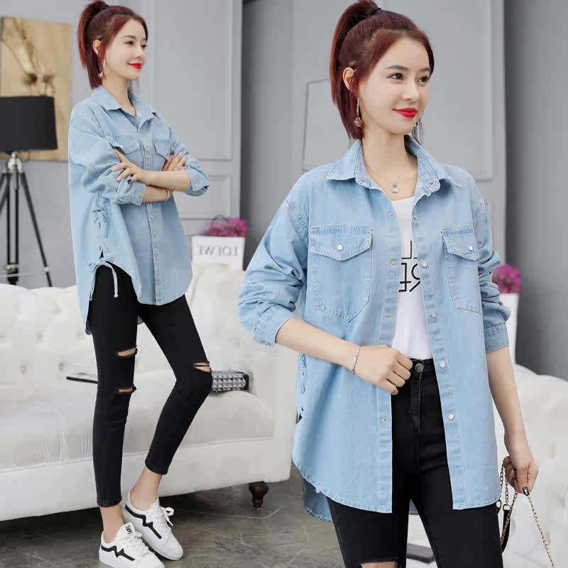 Светлая длинная ретро рубашка, весенняя куртка, средней длины, 2020, в корейском стиле, оверсайз