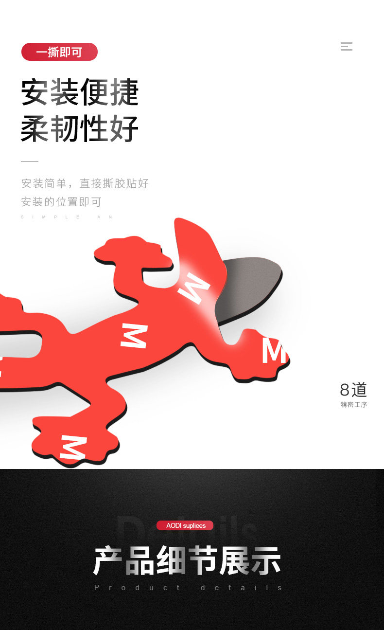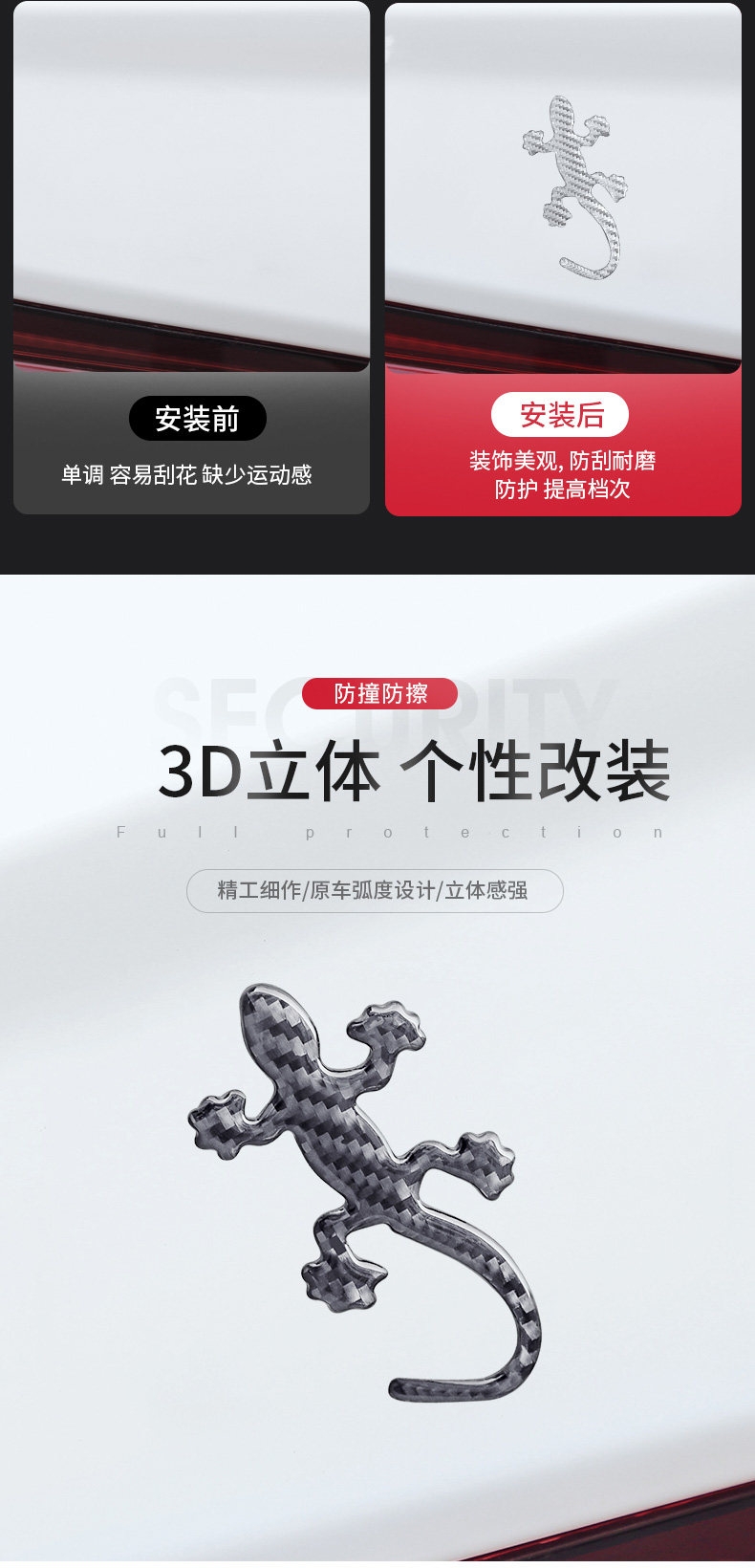 - Гекковое пластырь [черное красное углеродное волокно] хвост справа