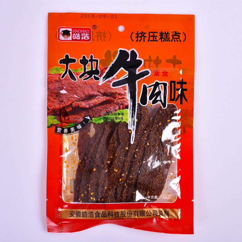 Хао Хао Большой кусок говяжьего аромата пряные полоски 80 -х годов повседневная ностальгическая закуска Большая пряная полоса глютен 82 грамма большая сумка