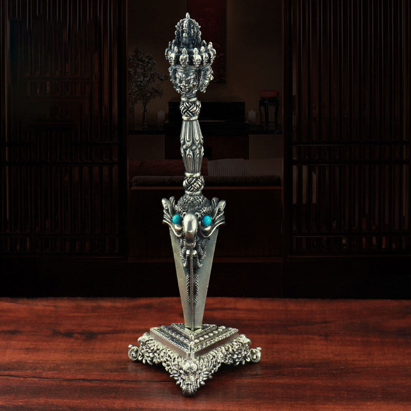 Тибетское устройство подачи чистое бронзовое серебряное бриллиант 撅 Три стороны орнамента Paba King Kong Pestle Bet Bes