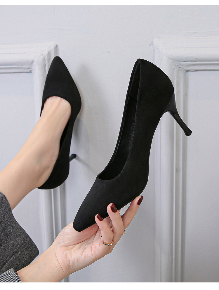 Черные туфли на высоком каблуке на высоком каблуке, замшевый пиджак классического кроя для школьников