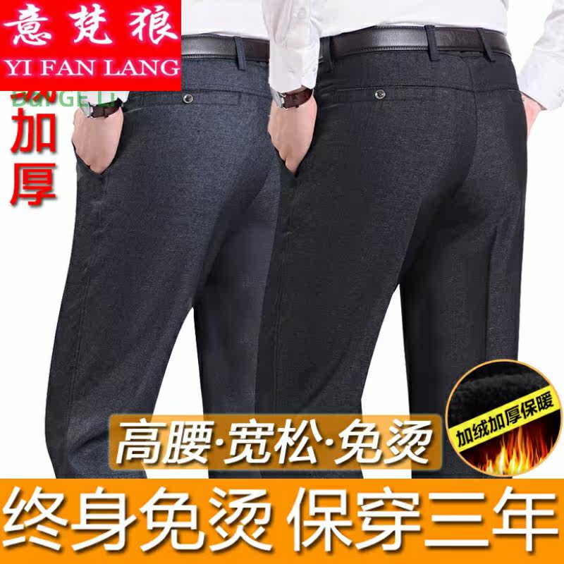 Осенние штаны, зимние джинсы с начесом, для мужчины среднего возраста