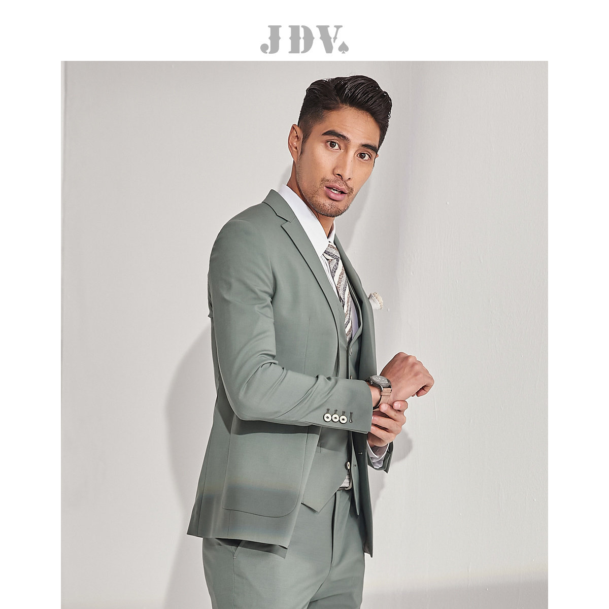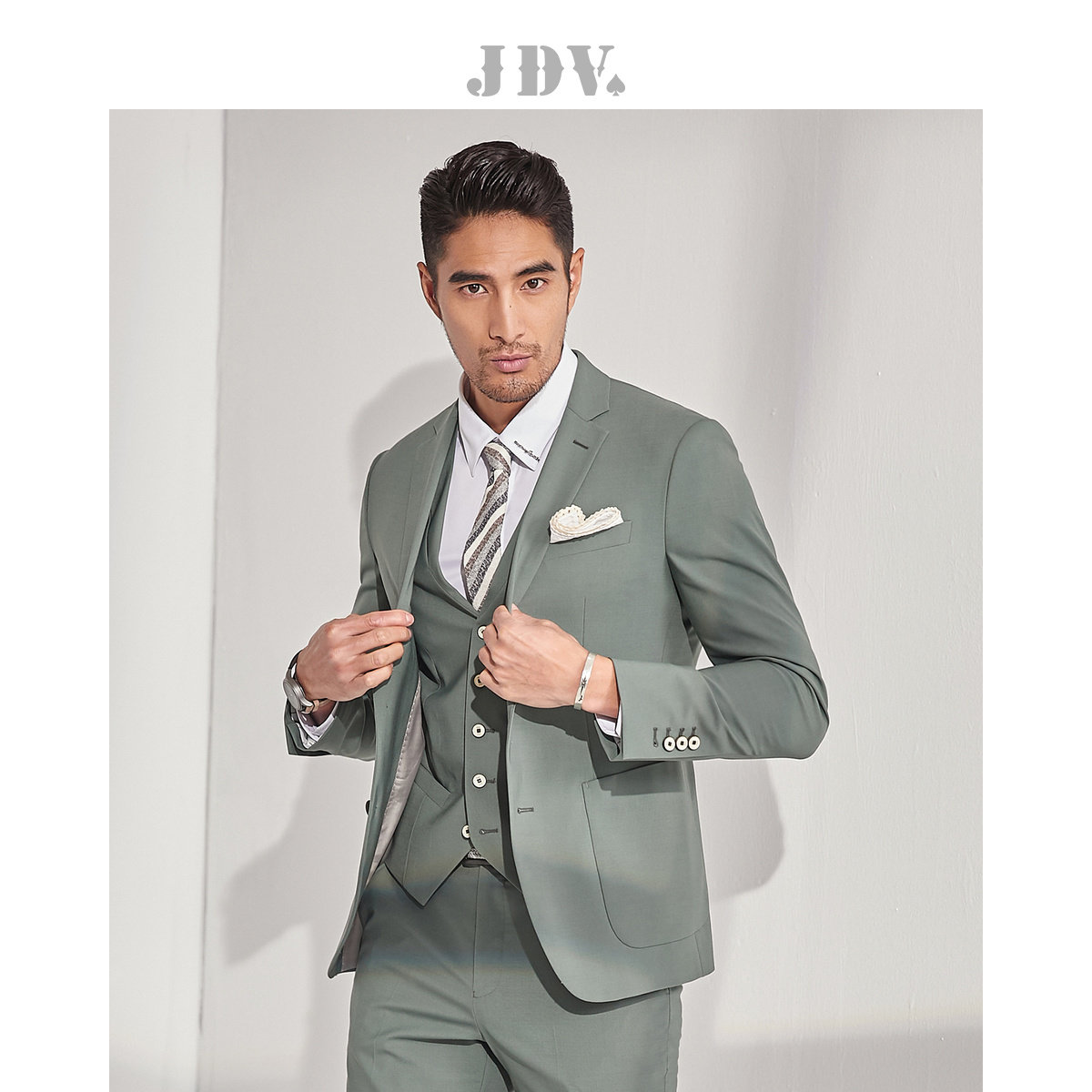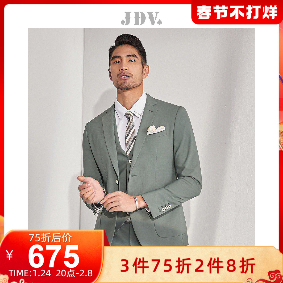 JDV Мужской осень и зимний торговый центр такого же бизнес -стройный костюм из шерсти микро -бомба с длинным рукавом костюмы молодые и середины