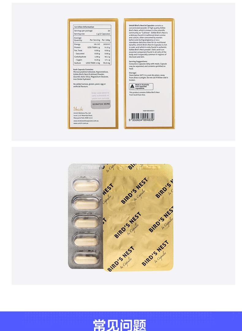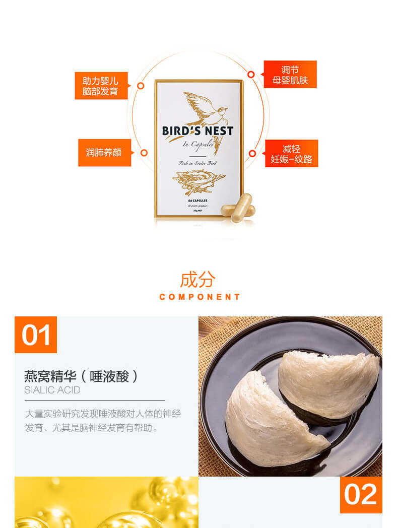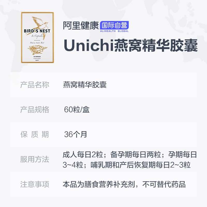[Али здравоохранение] Австралия импортировал Unichi Bird's Nest Essence Capsule 60 зерна питания беременности и легких