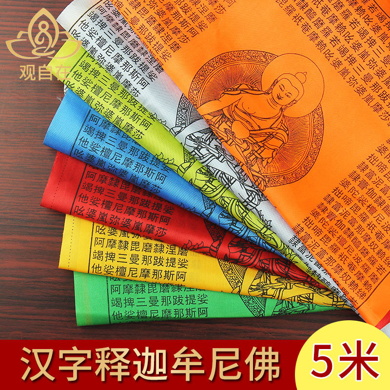 Тысячи мудрости благоприятны 祥 китайские иероглифы, Шакья в помещении и на открытом воздухе красочные, флаги и флаги, 5 метров 21 лица